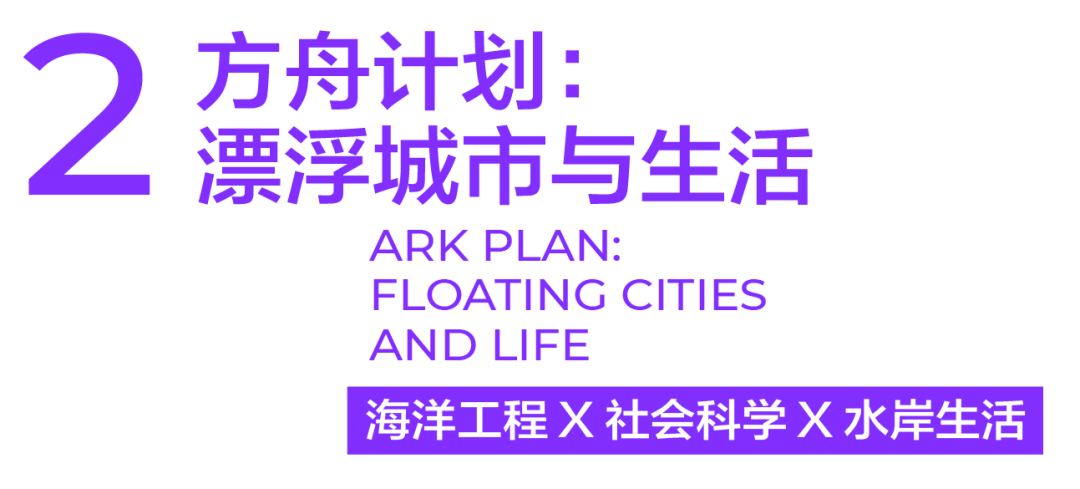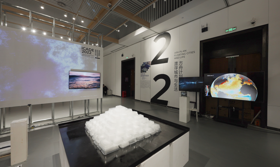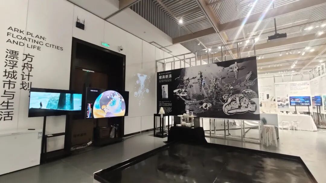 海洋是生命的起源,也可能是生命的归宿。篇章“活着的人”中,作品《漂浮音乐会》通过海上音乐会的设计链接海洋、人与环境,用建筑、自然与音乐结合的互动体验消解人在城市生活中的禁锢感;篇章“逝去的人”则通过《流》和《无题》两个装置表达时间和环境的变迁,阐释人类与海洋的关系以及人类之于海洋的影响;而篇章“远航的人”着眼于滨海城市居民的应急逃生问题,在《海上社区 - 核心塔等比例模型》、《海上社区 - 功能单元等比例模型》、《全球海表面温度距平及海冰密集度、形变率可视化》三件作品中构建了在未来地球环境气候巨变的新的海洋情况下的生存系统,重新思考随“涡”逐流、万物互依的人与海洋和谐共处的生存之道。三个篇章的作品融合建筑设计、交互设计、装置艺术、服务系统设计等不同的设计语言,从不同专业维度阐释、批评和反思“方舟计划”的展览主题,倾注着创作同学的对海洋环境的思考、情感以及美好愿望。