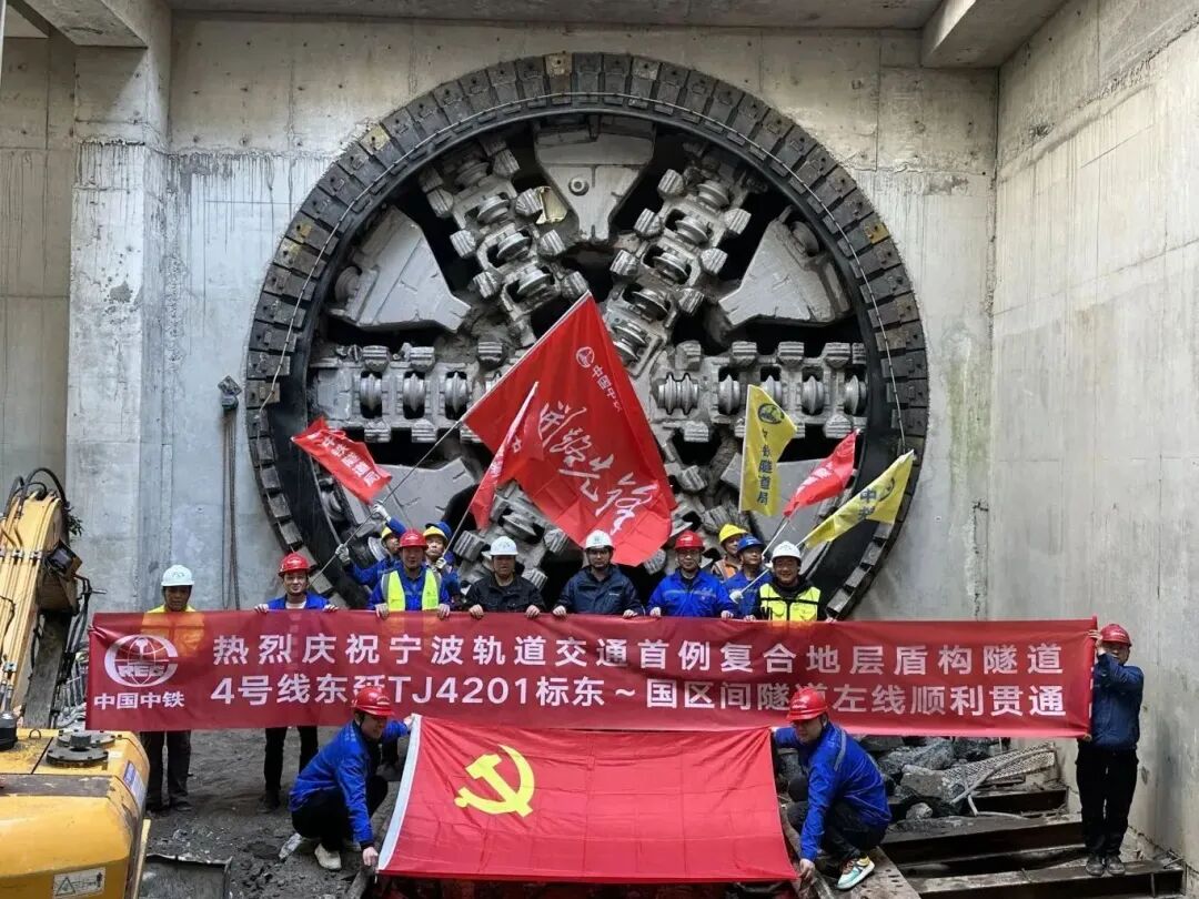 3月10日,随着“中铁341”号盾构机刀盘破墙而出,历时376天,宁波市轨道交通4号线东延TJ4201标东钱湖站~国际会议中心站区间左线隧道胜利贯通。这也标志着宁波轨道交通建设史上首座下穿复合地层的隧道实现贯通。