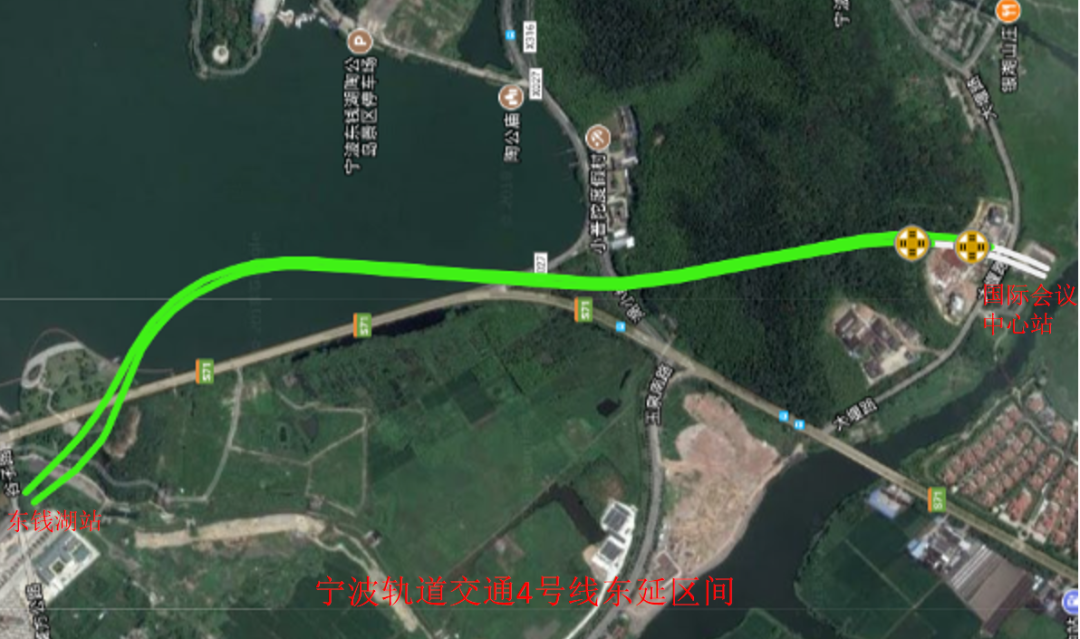 项目东钱湖站~国际会议中心站区间左线全长2004米,区间起于东钱湖站站后预留段,出站后向西南方向侧穿王安石公园小山丘、进入湖区,下穿陶公路、奕大山,终端接入国际会议中心站。区间地质情况复杂,多种地层交互,其中软土段地层全长266米,湖区黏土段地层全长660米,上软下硬复合地层全长78米,全断面强/中风化凝灰岩地层全长1000米。盾构区间需长距离穿越湖区和全断面硬岩地层,此类地层岩石抗压强度最高可达147兆帕,同时遍布高水头裂隙水发育破碎带,极易引发盾构喷渣涌水。各类施工难题层层交织,区间施工难度前所未有。