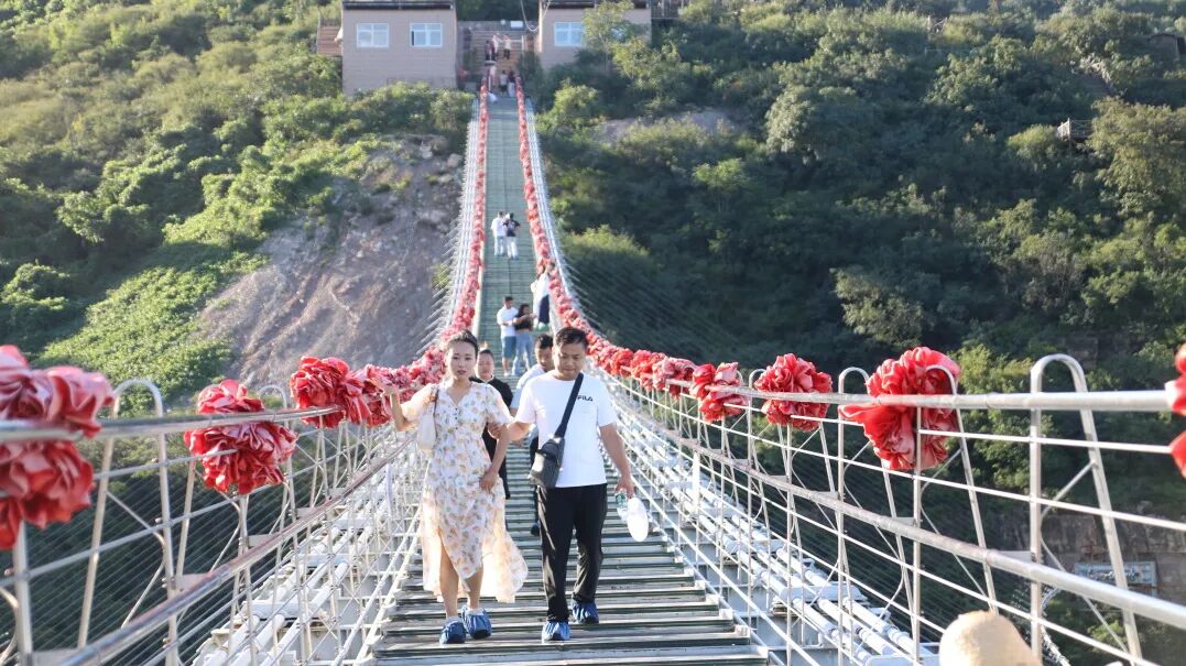 玻璃吊桥化鹊桥,甜蜜相约红崖谷