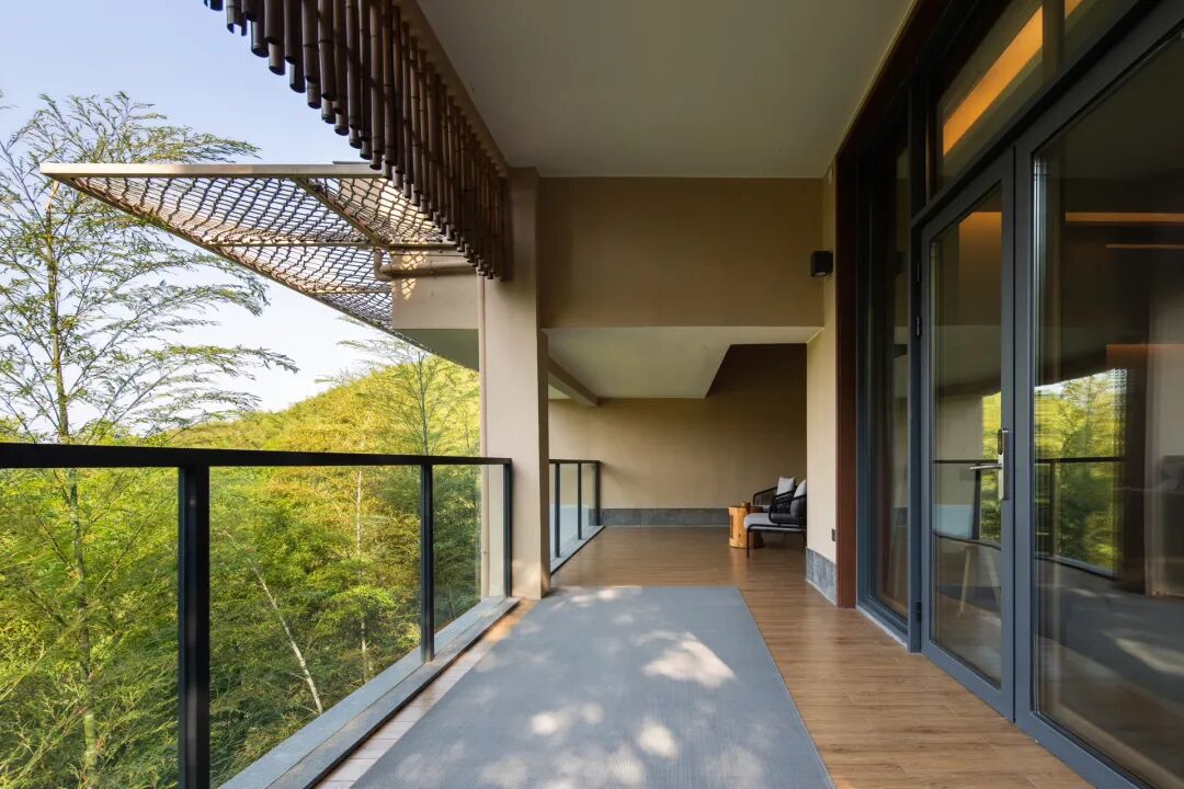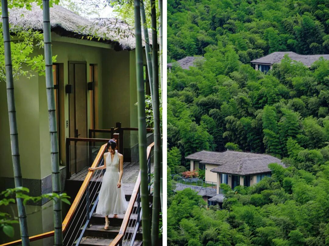 酒店藏于3.5万亩茂密的竹林,宛如屏障,将酒店与外界的喧闹繁华隔绝开来。这一份天然的寂静,别处难寻,有道是:“结庐在人境,而无车马喧。”