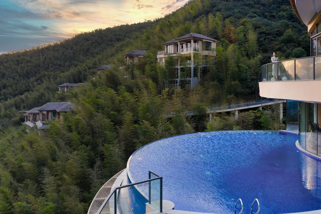 南山竹海所拥有的4万亩青葱竹林,承载了奥斯卡电影《卧虎藏龙》的刀光剑影,壮观而翩翩起舞的竹叶带着满目的侠气,造就了溧阳涧谷中的独特景观,置身酒店,推窗便是这绝无仅有的壮美“江湖”。