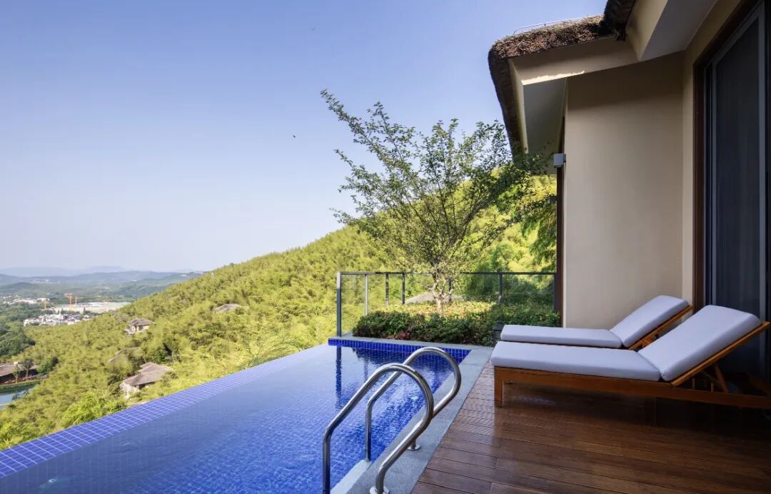 其中,赏竹房型带有泡池,位于别墅一层;观山房型带有泡池和私人泳池,位于别墅二层。