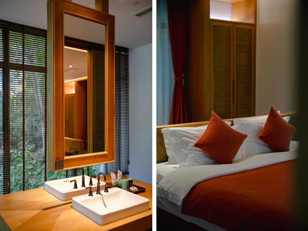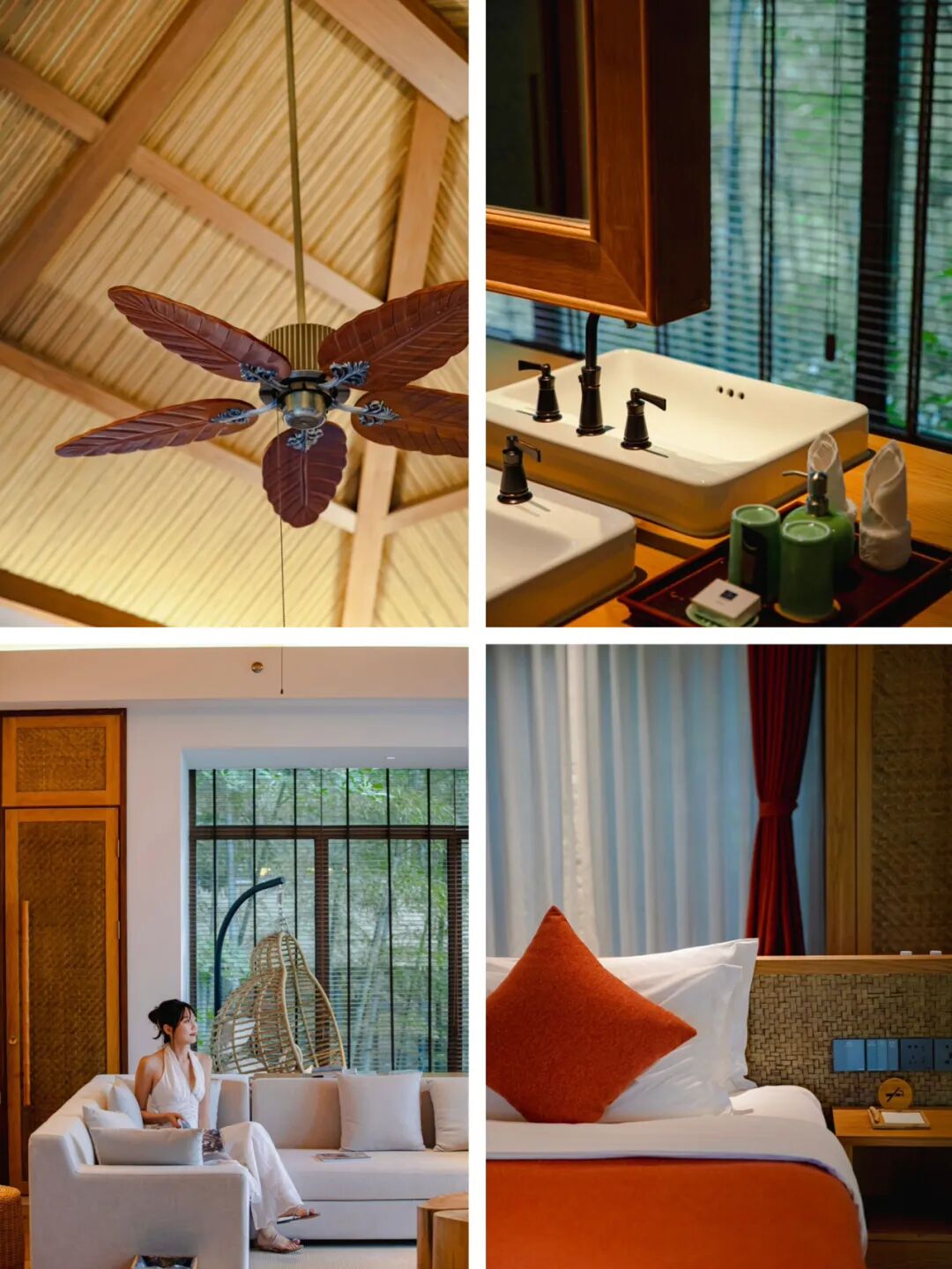 这次套餐的花坞·赏竹客房,房间的布置极为轻淡简约,没有冗余的装饰摆件。但每一处细节都是精心,还采用了不少的竹制品,更添几分禅意。