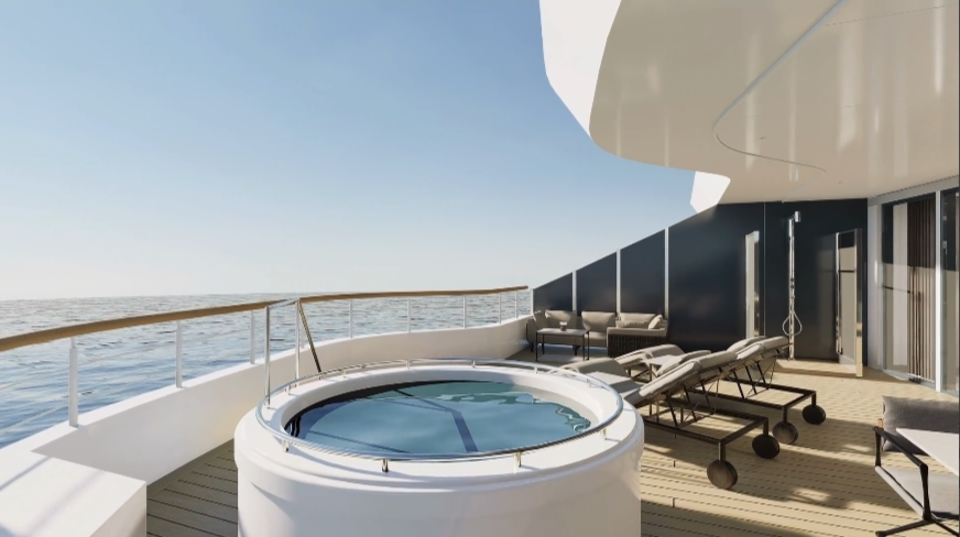 和第一艘 Evrima 号(2022年10月启航)以及第二艘 Ilma 号(2024年9月启航)比起来,最新的第三艘 Luminara 号(预计2025年7月启航)在造船工艺、奢华程度、出海体验、航程设计等各方面均全面超越前作!