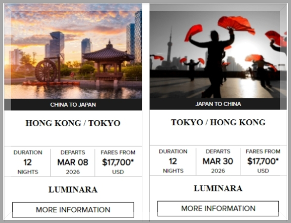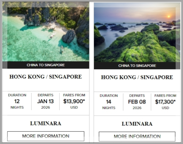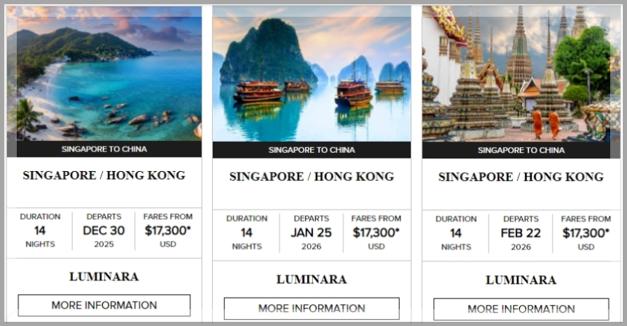 Luminara 号仿佛听到了亚洲粉丝们的心声,在2025年7月21日首航以及前三个月完成地中海的航线后,定于2025年12月30日正式转场东南亚,开启新加坡-香港的首个东南亚跨年航程!