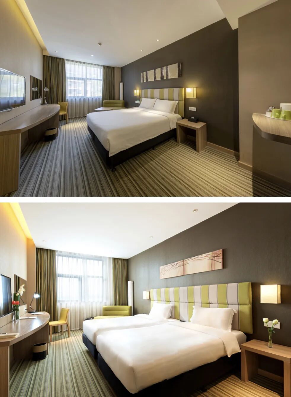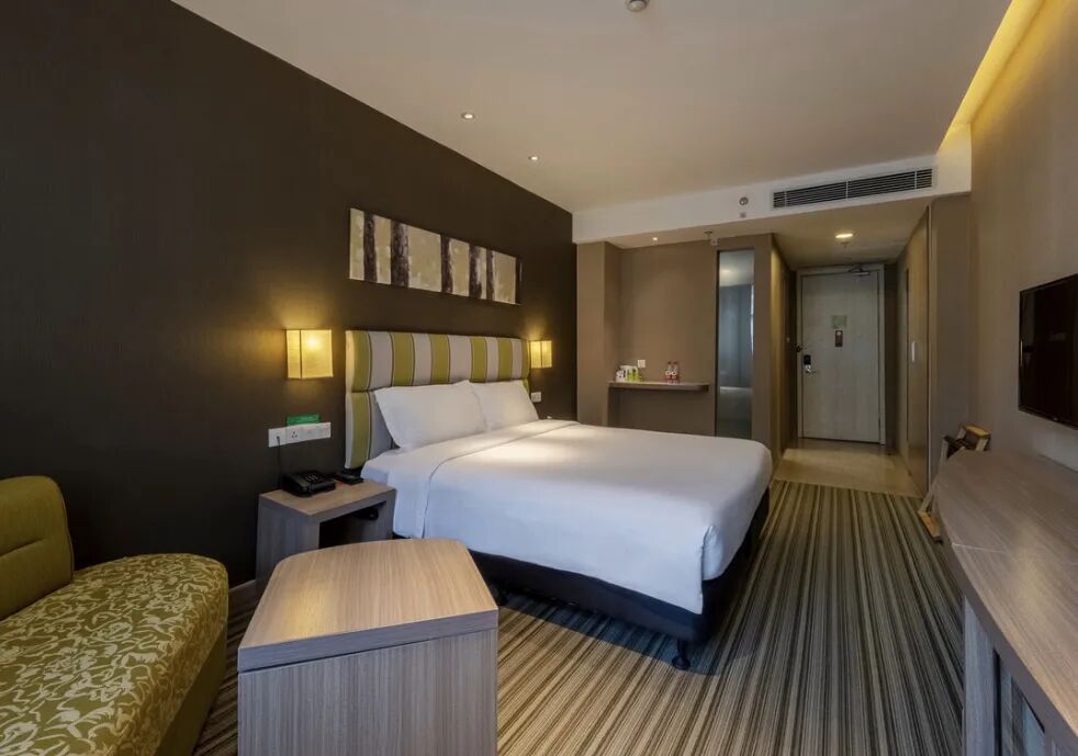 酒店房间相当宽阔舒适,以绿色为主色调的设计清新又不失格调。