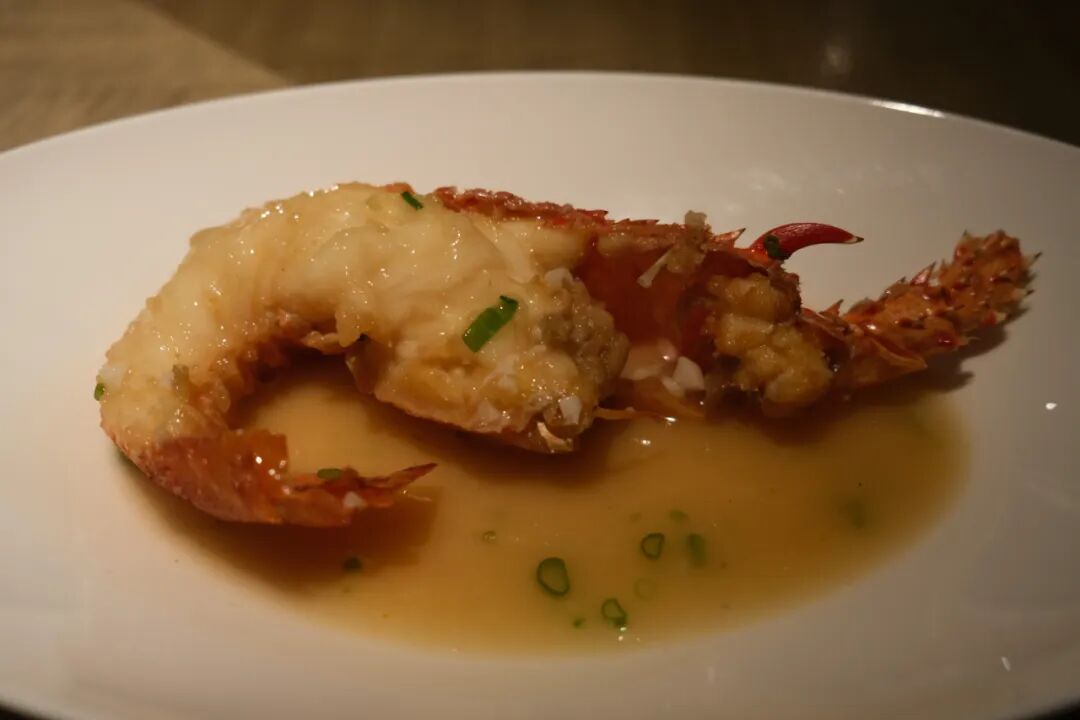 除了烤鸭,江南春的上汤焗本地龙虾,选用的是新鲜捕捞的龙虾,肉质紧实,口感鲜美。