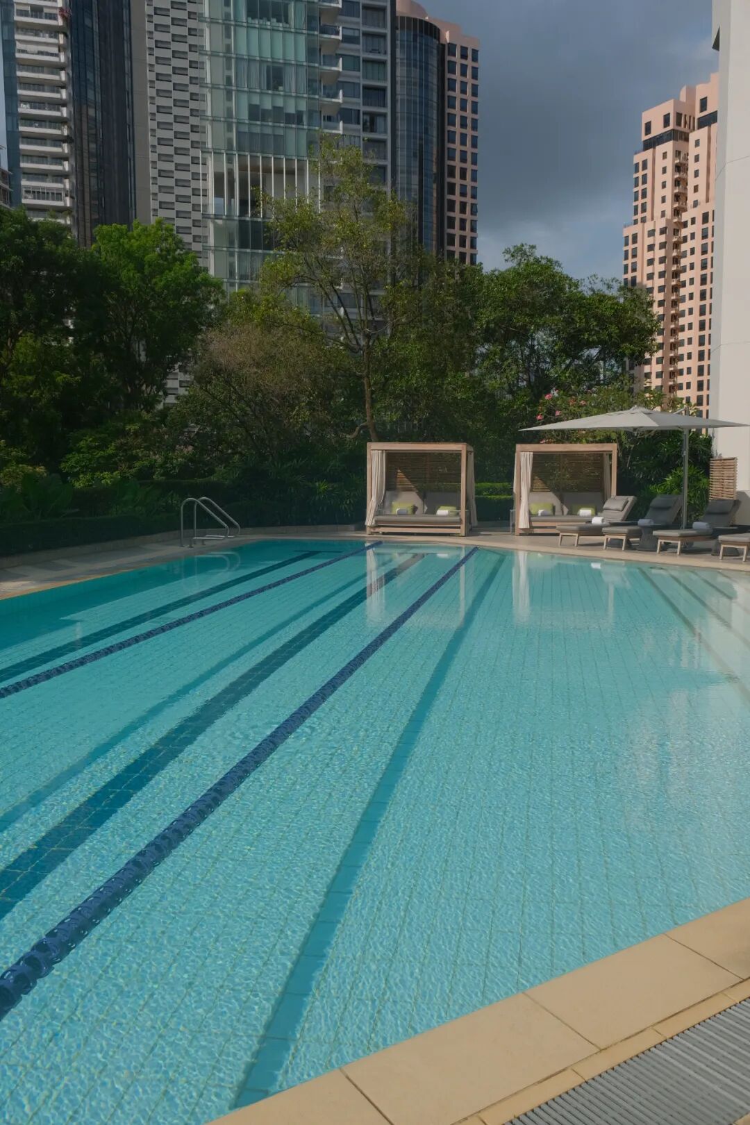 站在屋顶泳池边,仿佛置身于一个360度全景的观景台,乌节路的天际线在脚下铺展开来。