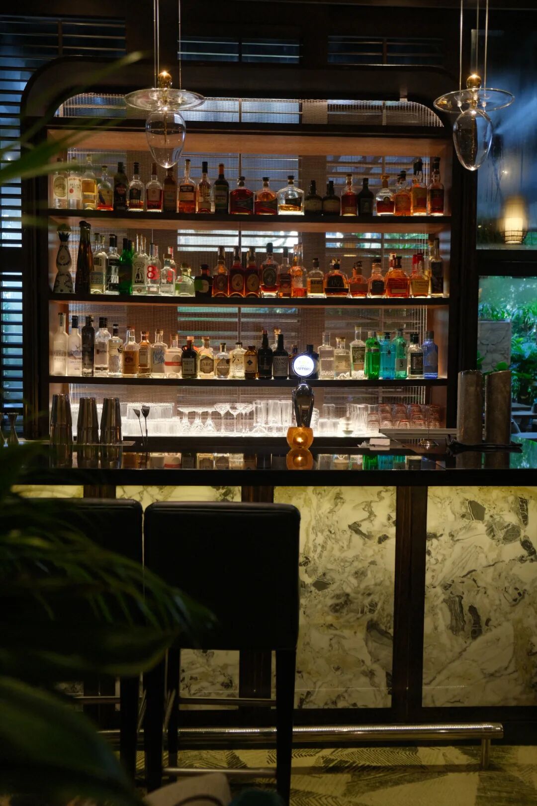旁边还有一个同名酒吧,小酌一口,品味当地美味,其中一些食材精心挑选自酒店的有机花园,如招牌Blue Hour Sour鸡尾酒便是采用本地蝶豆迷人的变色提取物,献礼25年岛国纪念日。