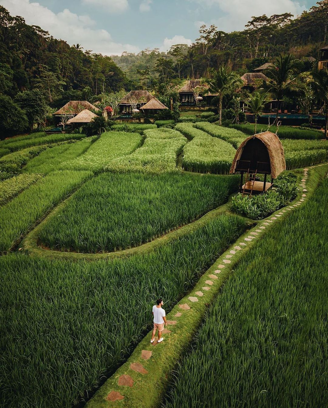 藏于乌布梯田深处的Mandapa,草木葱茏的起伏群山、阿漾河,以及翠绿的稻田,让人仿佛置身于摆脱尘世纷扰的天堂。