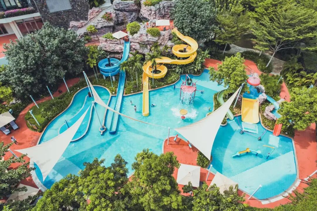 儿童池、大滑梯、喷水枪....宝贝们都能在这里找到乐趣。为了保障小朋友们的安全,酒店贴心地铺设了软橡胶垫确保玩乐区域安全。