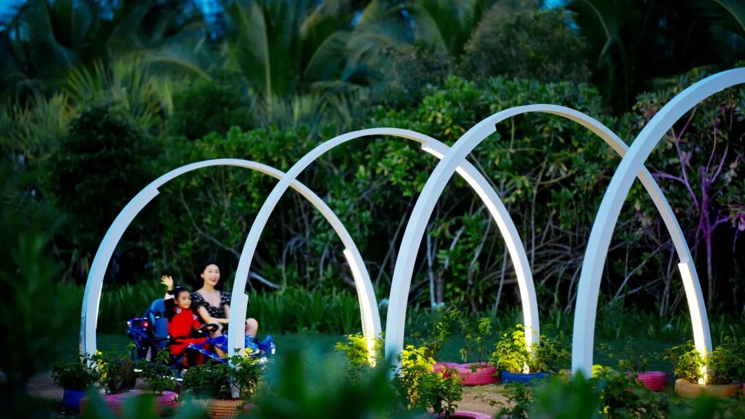 大家可以沉浸在花香烂漫中放松游玩,整体的场地设计以花朵作为主要元素,为酒店郁郁葱葱的热带园林带来缤纷绚烂的色彩。