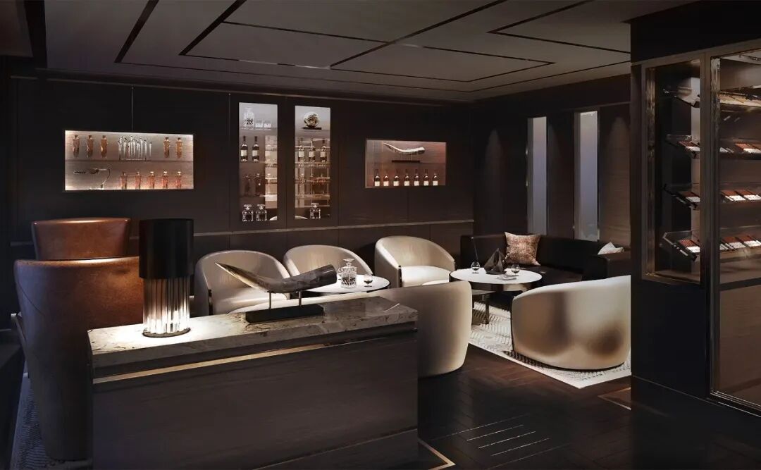时髦温馨的雪茄吧,优质干邑白兰地配珍藏在最先进雪茄盒里的高级手卷雪茄,为你在海上完美的一天画上圆满的句号。