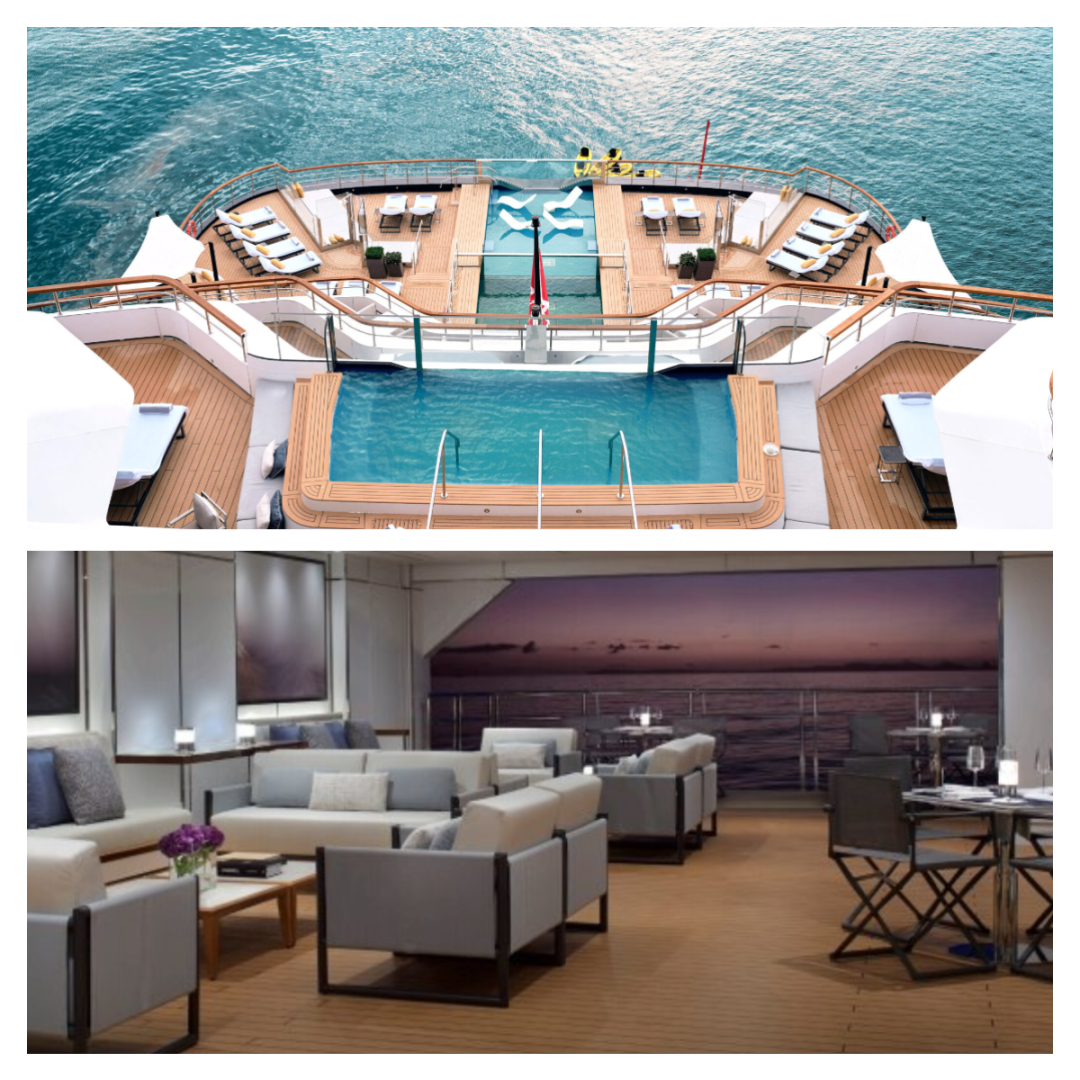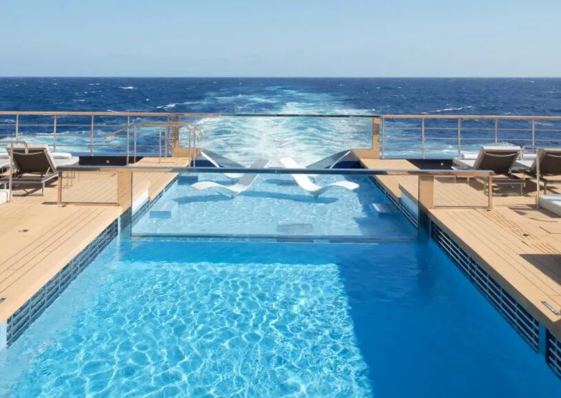 泳池甲板是艇上主泳池的所在地,悠闲的躺在日光浴台上晒太阳或在舒适的躺椅上放松身体和放空心灵。池边几步之遥的Pool House餐厅全天随时提供餐饮服务。发挥你的冒险探索精神去上下几层甲板看看,你会惊喜的发现无边际泳池和两个漩涡水疗Spa也在那里。