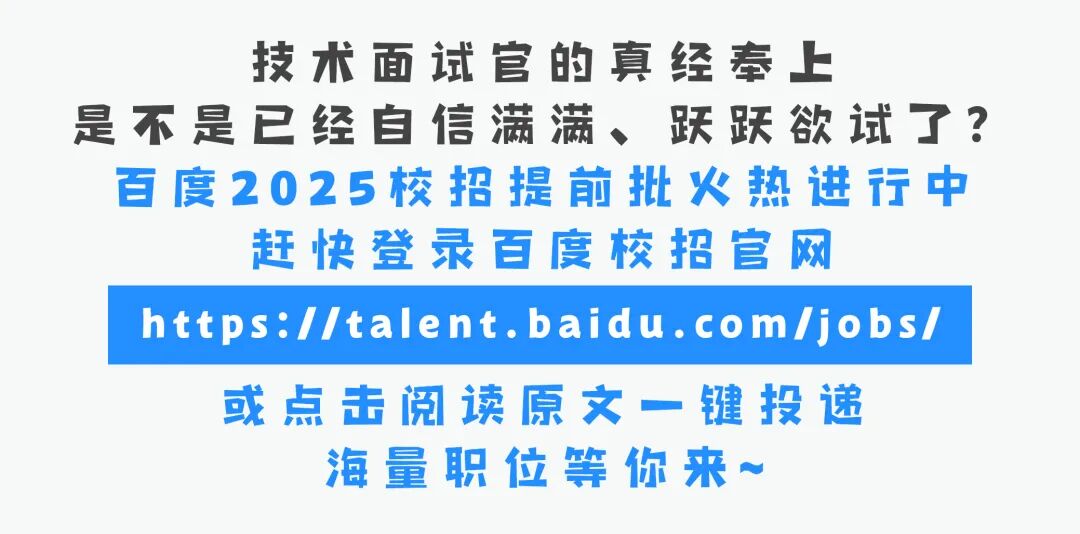文章内容来源于公众号:百度招聘,点此可查看原文,内容版权归相关企业所有,本网站仅供交流学习。若涉及版权问题或存在侵权情况,请及时与我们联系,我们将第一时间进行删除处理。