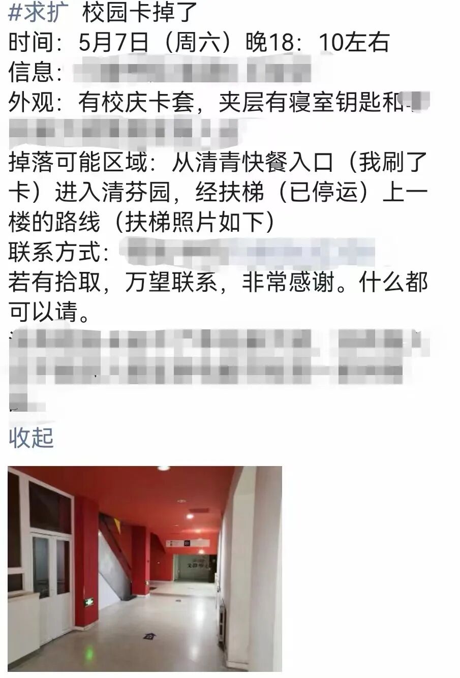但很多情况下,遗失卡可能没被工作人员发现,可能留在了各分队暂时未能覆盖的单位;校园卡可能丢在了系馆,可能丢在了路上,甚至丢在了校外。