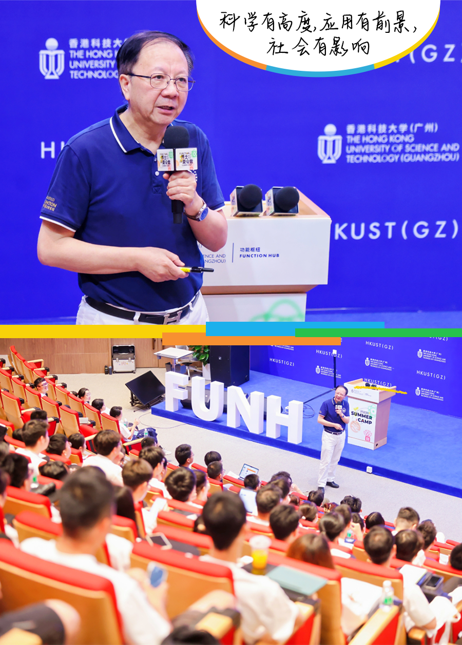 温院长热情地欢迎了营员们,并介绍了功能枢纽的独特魅力与核心优势。他强调,功能枢纽以融合学科为理念,打破传统壁垒,为解决“卡脖子”技术难题提供创新土壤。港科大一体,双校互补;依托学校过硬的实验室资源,优质的师资,广泛的国际组织合作,以及与产业界的紧密联系等,这些优势令功能枢纽成为有志攻克技术难题、推动科技成果落地的学子的绝佳成长平台。温院长鼓励营员及早准备、把握时间、勇攀高峰。