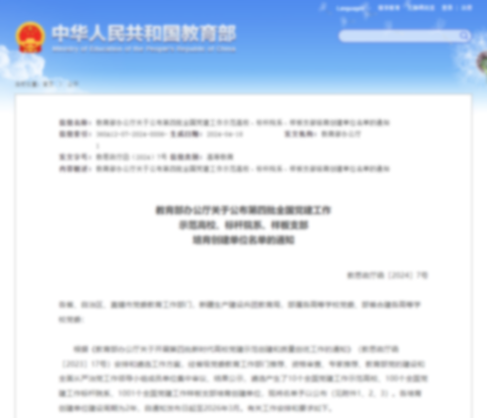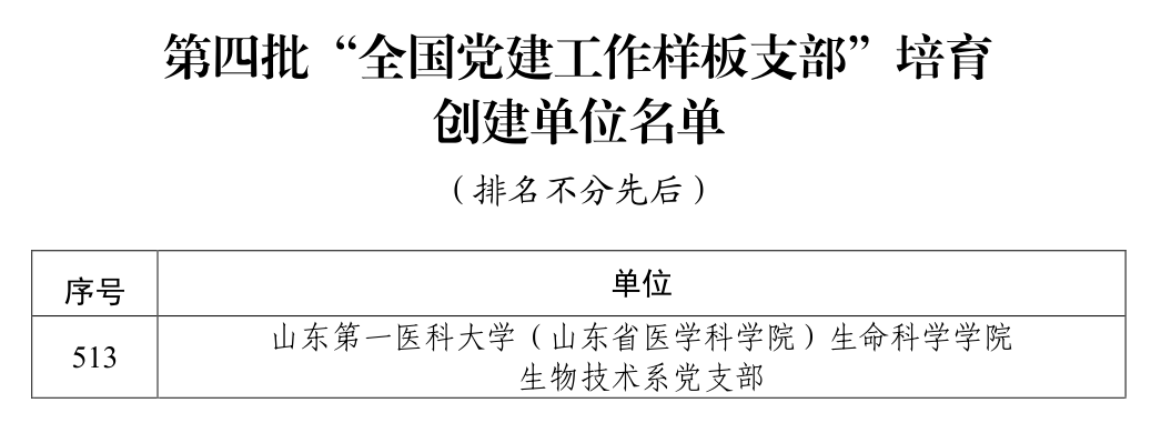 近日,教育部公布第四批全国党建工作示范高校、标杆院系、样板支部培育创建单位名单,遴选产生了10个全国党建工作示范高校、100个全国党建工作标杆院系、1001个全国党建工作样板支部培育创建单位。其中,校(院)生命科学学院生物技术系党支部入选全国党建工作样板支部培育创建单位。