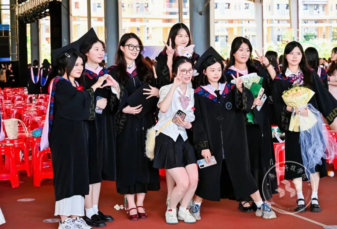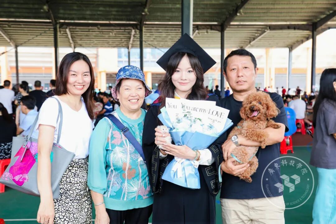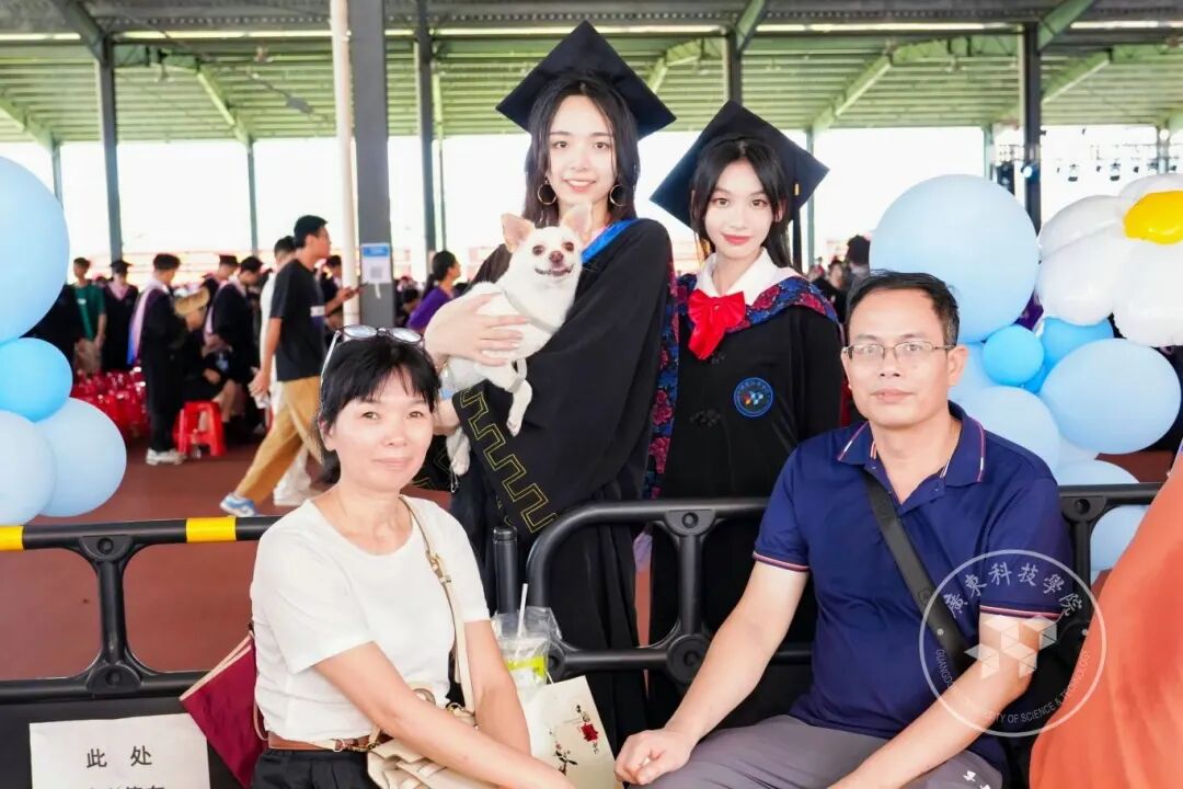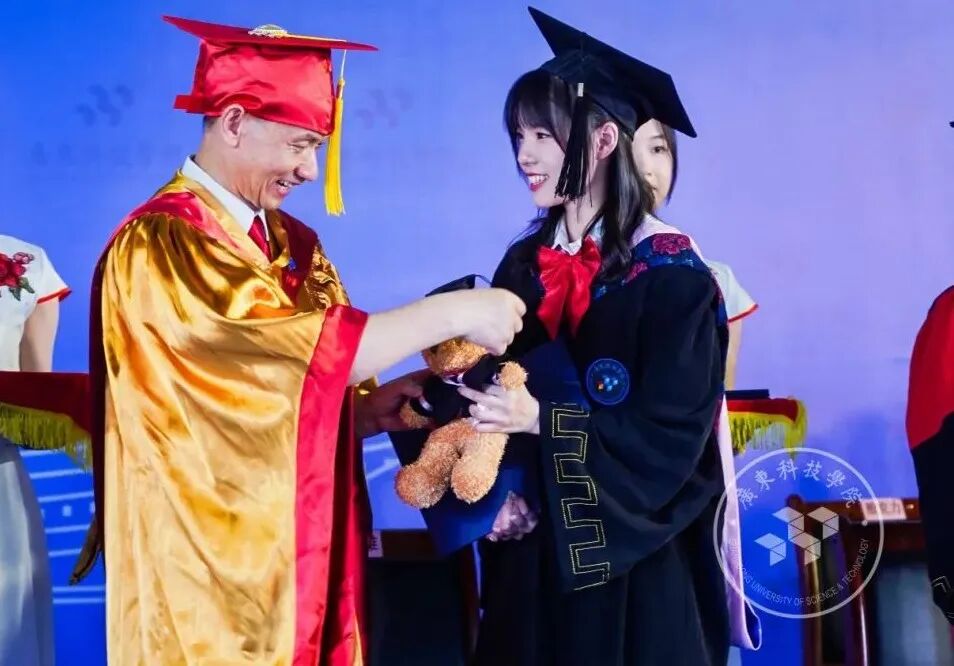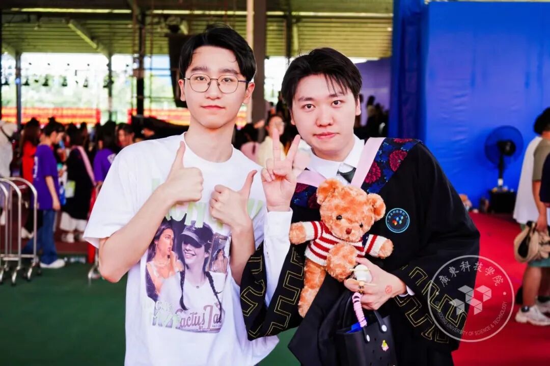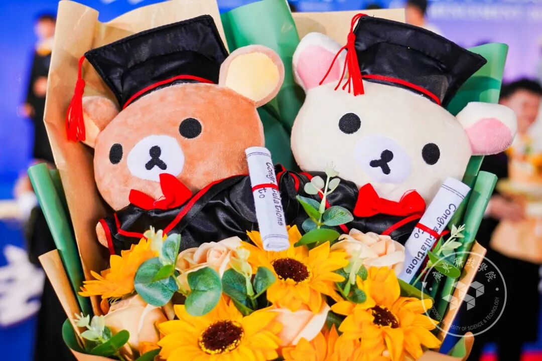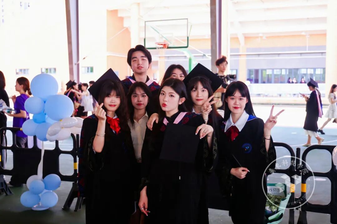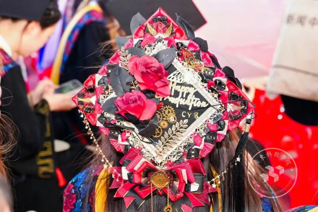 典礼现场彩带飘扬,气球高悬,校园里洋溢着欢声笑语,更有“显眼包”毕业生层出不穷,有的给校长送上一幅手绘的校园风景画,有的上台与校长欢乐碰杯,有的与可爱的“毛孩子”合影,并且拨穗时不忘带上毕业小熊,让校长也为小熊的学士帽进行“拨穗”,这些片段使得典礼的氛围既显幽默又充满温情。