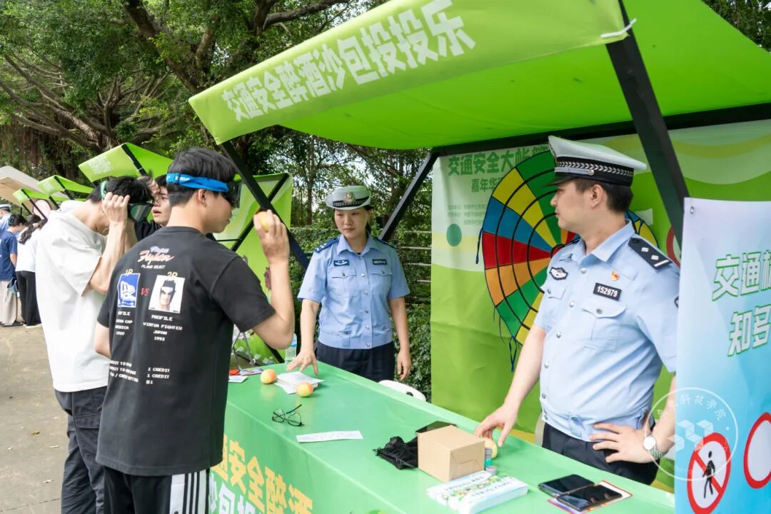 东莞交通安全“大篷车”进校园嘉年华活动在南城图书馆室外展区设置了一系列创新的体验环节,如大货车盲区、安全头盔展示区、酒驾体验区、交通标识牌识别展示区、交通安全“大富翁”游戏体验区、交通安全跳房子、交通安全答题体验、交通安全醉酒沙包投投乐、交通安全投壶、公安“反诈”专摊区、公安“禁毒”专摊区、银行“金融知识”专摊区等。