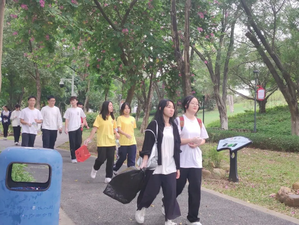 同学们不仅在徒步活动中锻炼身体、增强体质,还能参与环保行动,了解到垃圾分类、减少污染、保护动植物等环保知识,更加认识到环境保护和团队合作的重要性。