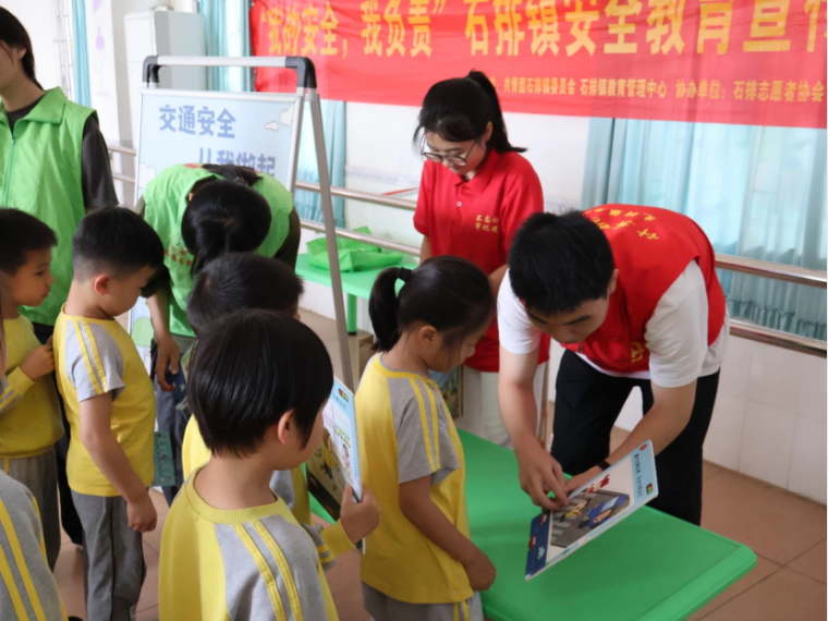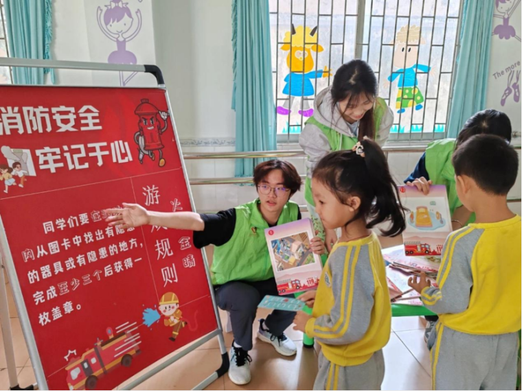 师生志愿者前往幼儿园开展安全宣传志愿活动,通过开展抽取交通安全图、识别隐患卡等多项游戏互动,帮助小朋友树立安全防范意识、学会保护自己远离危害。