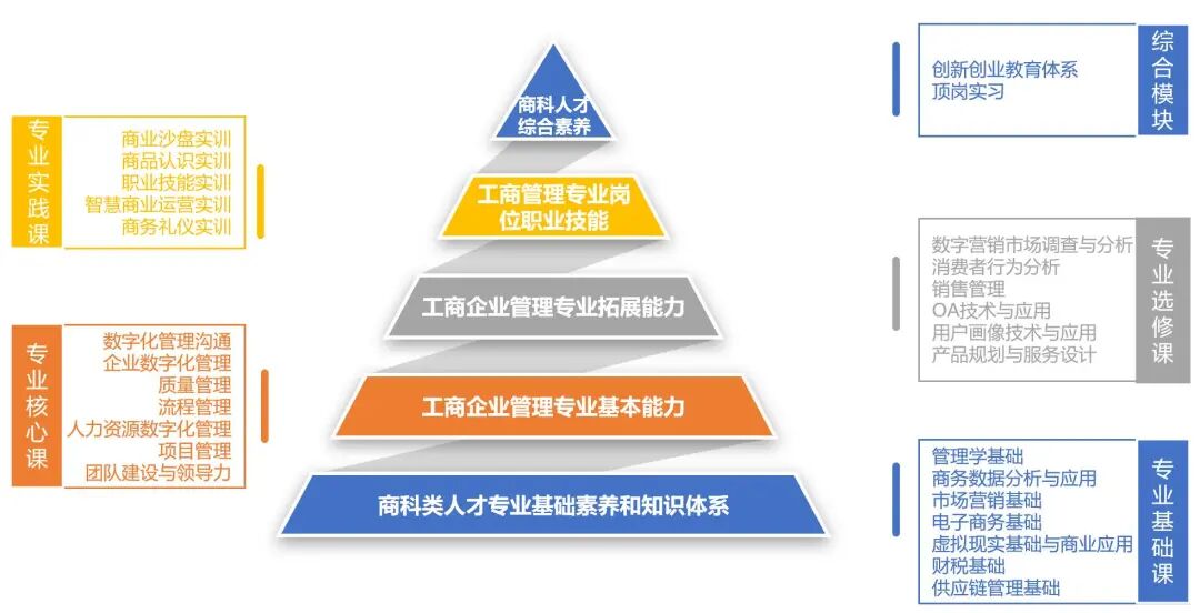 培养目标:工商企业管理专业是培养人才定位于具备高品质、复合化、跨行业、数字化、职业化等特点,精技术、懂业务、懂运营的高质量T型人才。