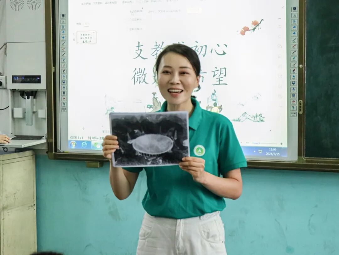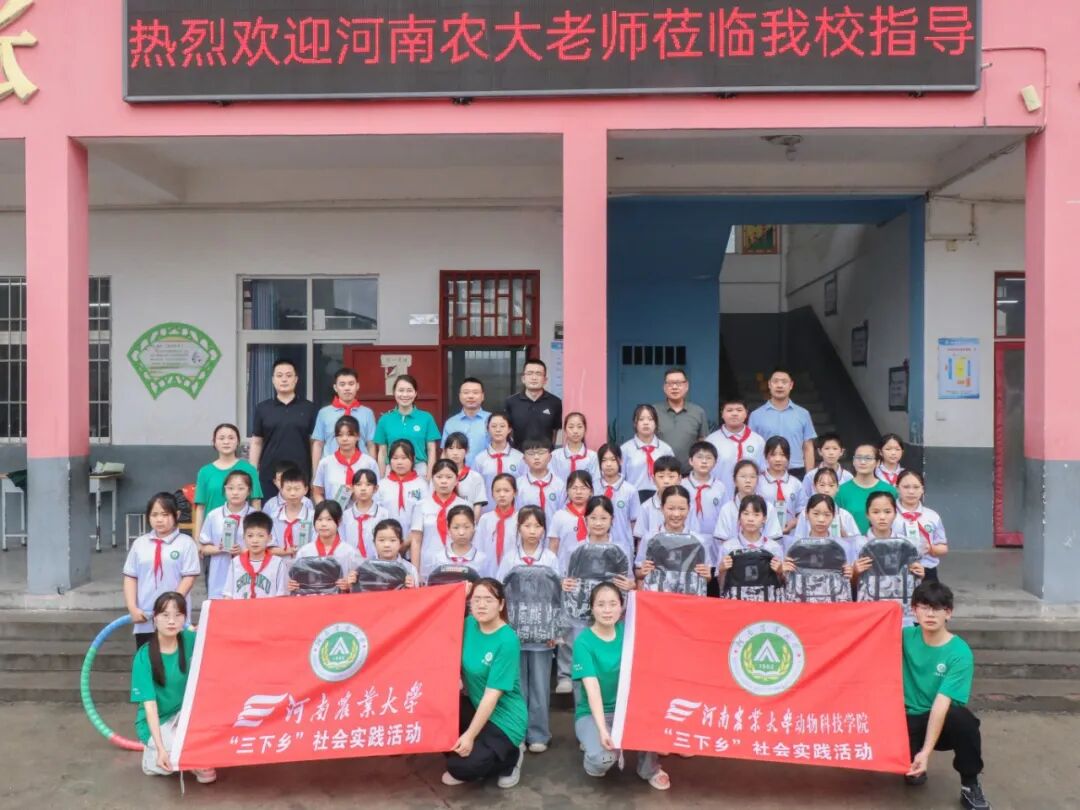 这是河南农业大学动物科技学院“青春护蕾”暑期“三下乡”支教团队本次支教活动的“特别惊喜课堂”, 团队由10位来自河南农业大学动物科技学院的学生组成,这群生于农村、学在农大的“大朋友”已经在这里待了半月有余,他们在语文数学等基础课堂之上增设科学课堂、趣味手工活动、中国诗词启蒙等,并巧妙融入校本化的资源和特色,请“大专家”对话“小朋友”,一道开展价值引导、学业辅导、生活教导、美育启蒙,以此充分发挥新时代青年学子的知识才干,强化社会责任意识和青春担当,做好基层服务,助力乡村振兴,也将传承了20年的支教精神在此延续。