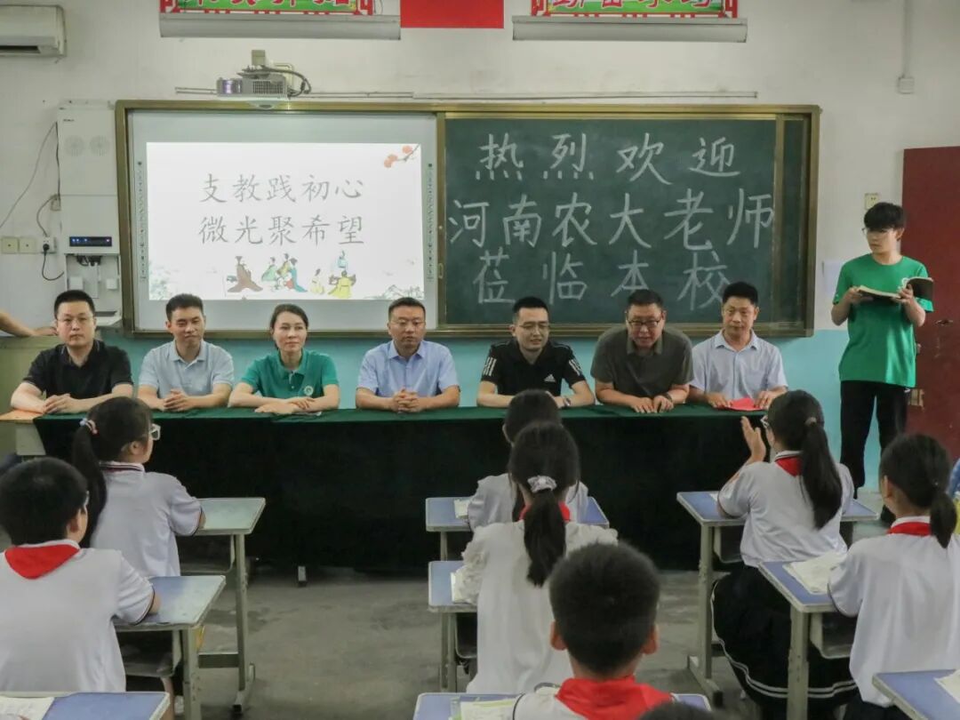 小手拉大手,协力向前行。在支教20周年这一重要节点,河南农业大学动物科技学院的领导老师除了进行互动交流,慰问支教成员,也为孩子们爱心捐赠了书包、水杯、呼啦圈等文体生活用品。