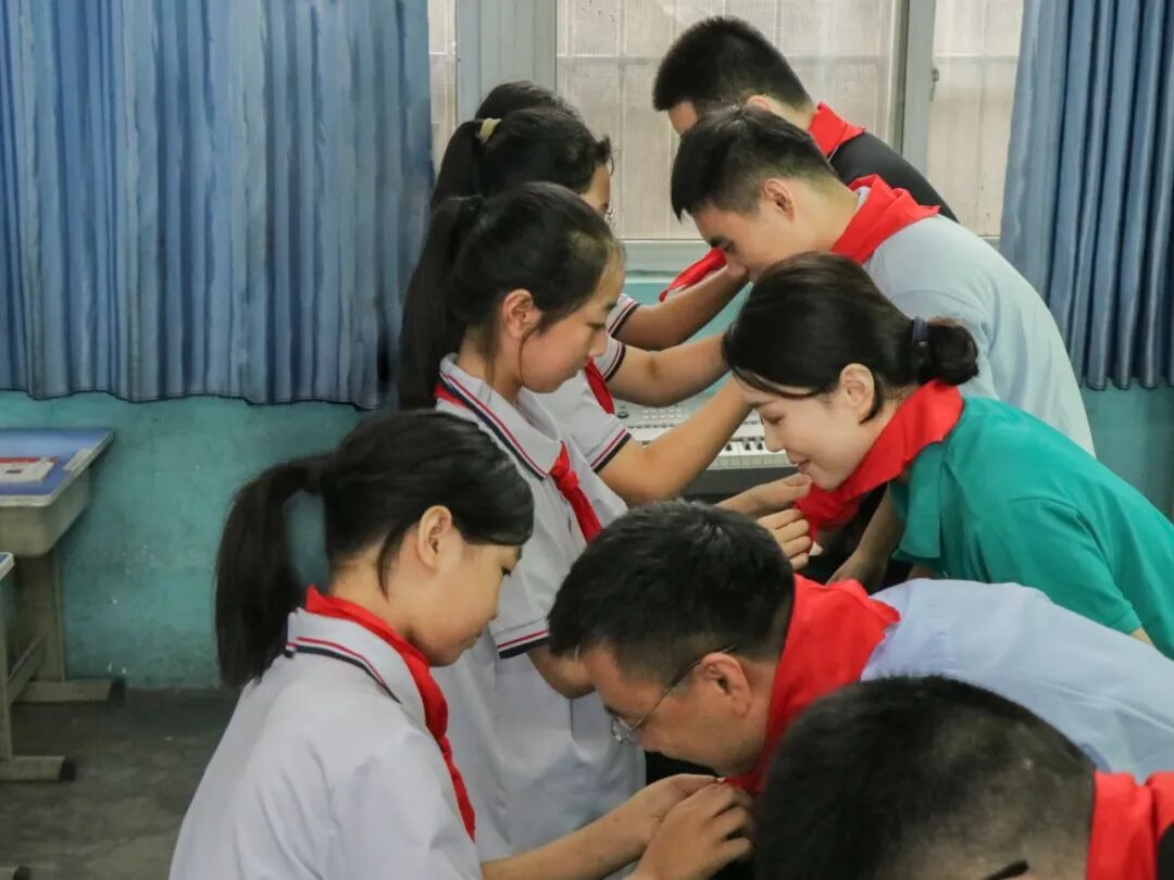 活动现场,学生们兴致勃勃,给老师们系上了代表敬爱之意的红领巾。韩城镇政府党委委员金博豪、韩城镇中心校长丁先锋、东关小学校长张幸峰对学院领导及支教团队一行人表示感谢,并将从多方面做好保障,于支教团队一道同心关爱,协力育才。