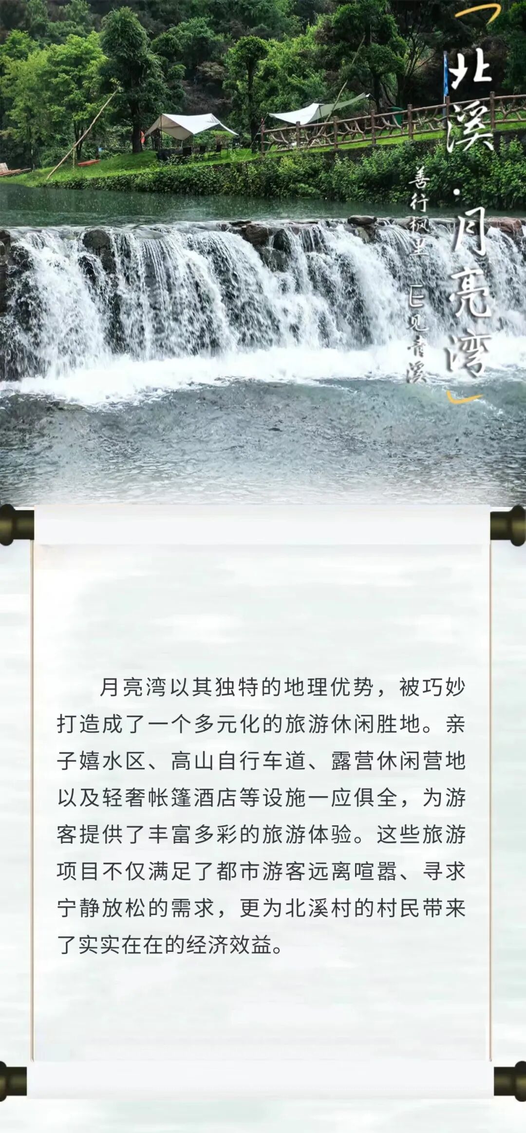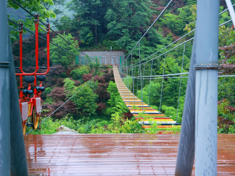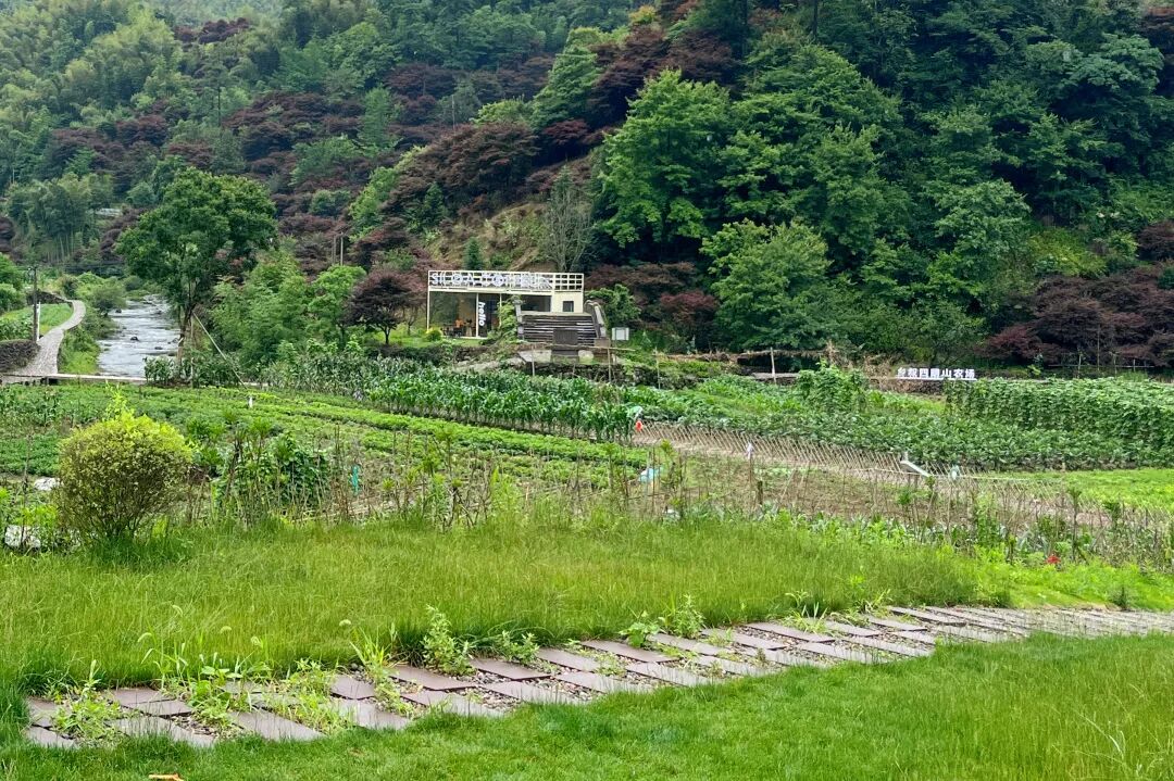6月28日,队员们来到乡叙四明山农场。农场是北溪村与宁波甬旅集团合作开发的最新项目之一,站在农场的高地上,队员们放眼望去,各式各样的高山蔬菜像画卷般铺展在眼前,一片生机盘然的景象。队员们了解到四明山镇北溪村启动新时代富裕富足样板村建设后,不久便遇到了集体经济增收困难、发展后劲不足等瓶颈制约。就在北溪村干部群众一筹莫展之时,宁波甬旅文化发展有限公司送来了“及时雨”,与该村就景村融合发展旅游产业达成了初步合作意向。队员们通过实地考察,向负责人卢叔叔询问种植技术和市场销售情况,对北溪村农业发展的现状和潜力有了更直观的了解,也为后续的调研和实践活动积累了宝贵资料。紧接着,实践队抵达了风景如画的月亮湾。这里山水相依,红枫遍野,林木葱郁。月亮湾以其独特的地理优势,被巧妙打造成了一个多元化的旅游休闲胜地。亲子嬉水区、高山自行车道、露营休闲营地以及轻奢帐篷酒店等设施一应俱全,为游客提供了丰富多彩的旅游体验。这些旅游项目不仅满足了都市游客远离喧嚣、寻求宁静放松的需求,更为北溪村的村民带来了实实在在的经济效益。随着月亮湾旅游项目的建设和发展,北溪村的村民们得以在家门口就业,参与到旅游服务工作中来,这不仅提高了他们的经济收入,也改善了他们的生活质量。村民们的日子越来越红火,生活水平不断提升,月亮湾也成为了推动北溪村乡村振兴和共同富裕的重要力量。