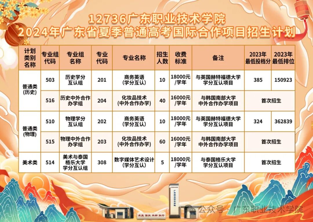 注:我校国际合作项目专业组,具体培养模式和学习费用请查看学校官网国际合作交流项目https://www.gdpt.edu.cn/al_23/6620