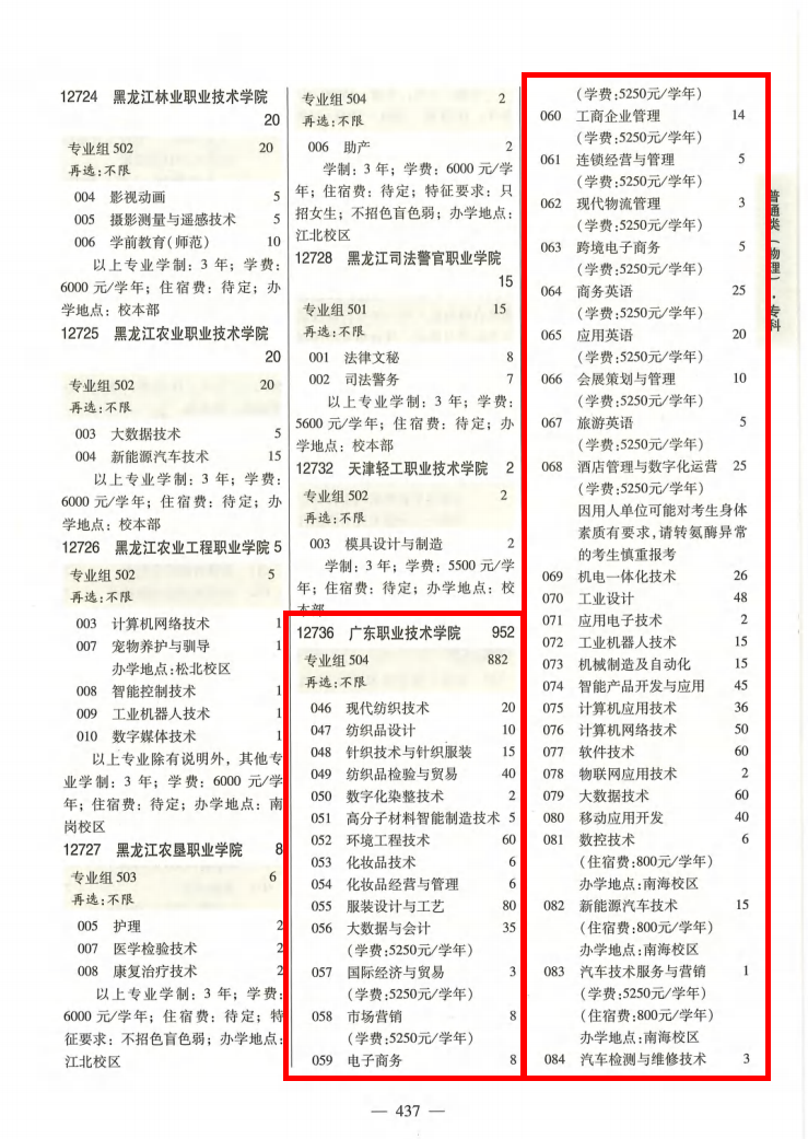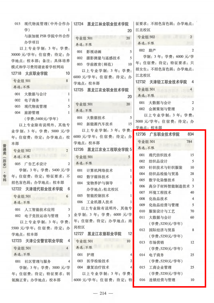 1.普通类(历史)考生填报志愿时详见《广东省2024年普通高等学校招生专业目录(普通类历史版)》第214-215页,4个专业组884个招生计划;