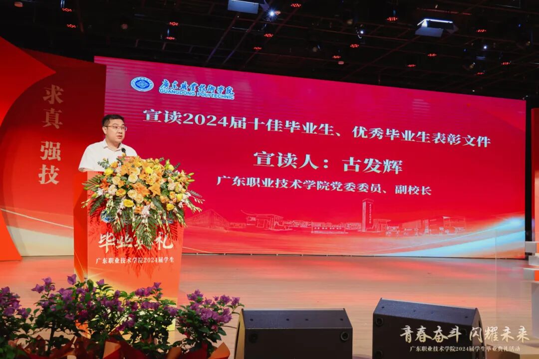 党委委员、副校长古发辉宣读2024届十佳毕业生、优秀毕业生表彰文件