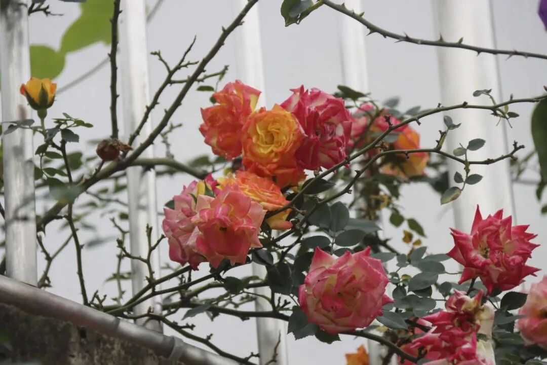 五彩的月季竞相盛放