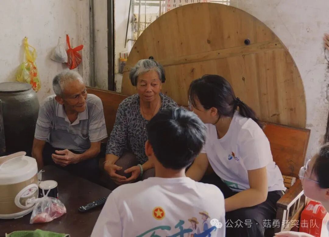 “菇勇者”突击队前往广州市从化区江埔街道江村开展暑期社会实践活动。他们到江村老党员家中进行慰问、与村委工作人员携手为长者营造整洁的居家环境,细致整理房间,与长者对话交流,进一步了解江村老人的各方面情况。