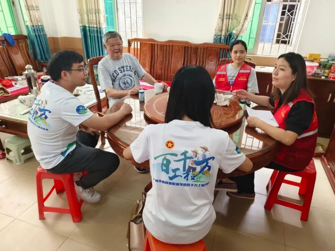 突击队深入基层一线,前往新兴县稔村镇白土村、水台镇棠下村进行深入调研。通过座谈会、进村入户、实地调研村镇企业等形式,深入了解当地历史文化、产业发展与乡村经济情况;并结合自身专业特色,围绕农村电商、农业产业拓销与品牌建设发展路径等方面进行思考,提出了各自的解决思路与想法,以自身的专业知识赋能“百千万工程”,促进乡村振兴发展。