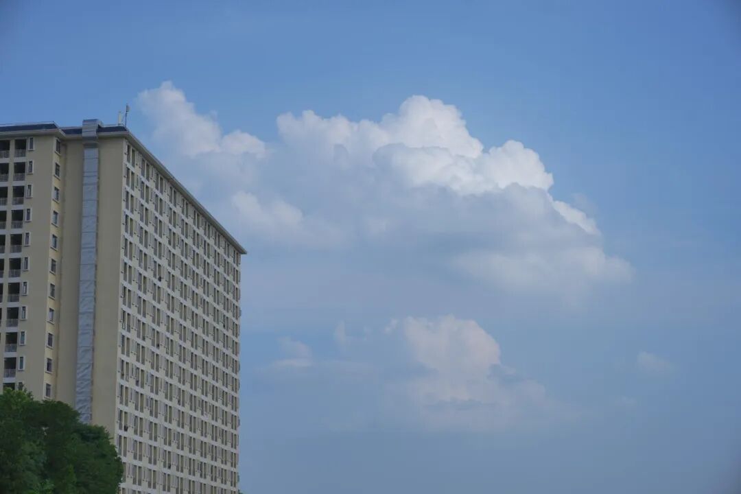 雪白的云朵和蔚蓝的天空相得益彰