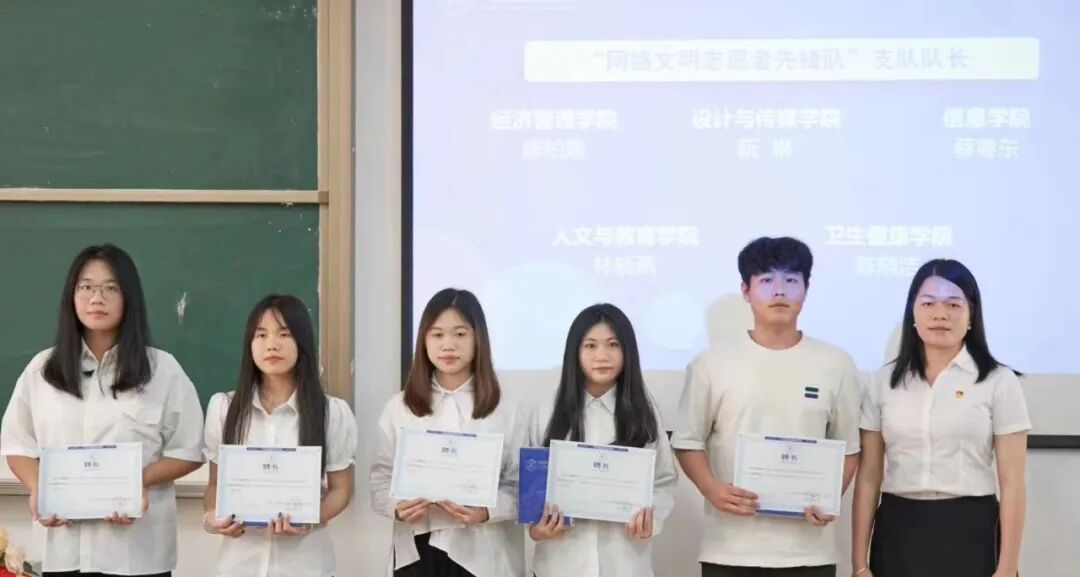 行政党群部部长许曾慧为“网络文明志愿者先锋队”支队队长颁发任命书。