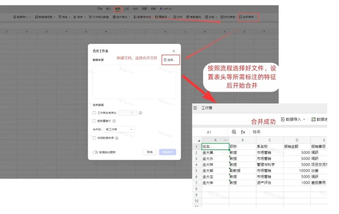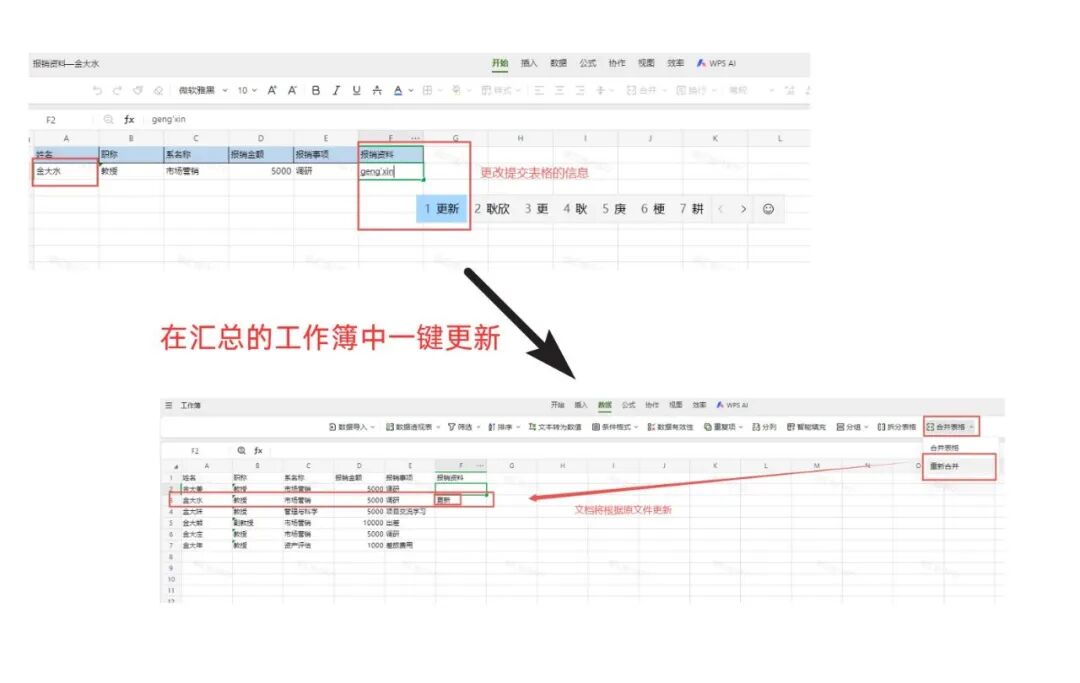 同时在原在线表格数据发生更改的情况下也能够同步更新合并后表格的信息。