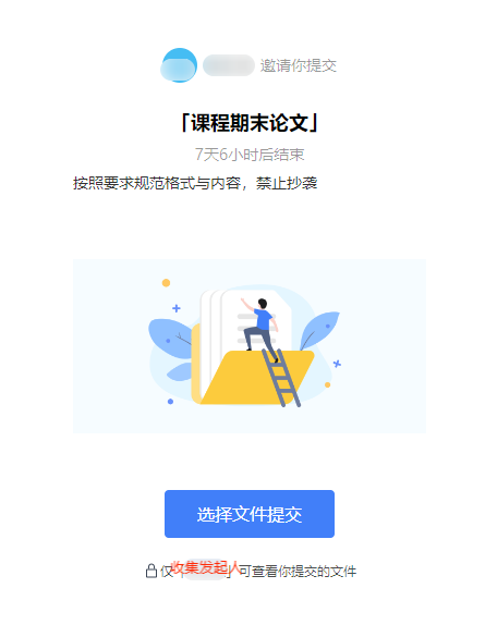 老师创立一个班级课程团队,同时老师还可发起收集(仅有老师能够查看提交的文档),能够保证仅学生个人和老师能够查看自己的作业,其他同学无法查看,同时设置作业提交提醒,方便老师实时了解作业提交进度。