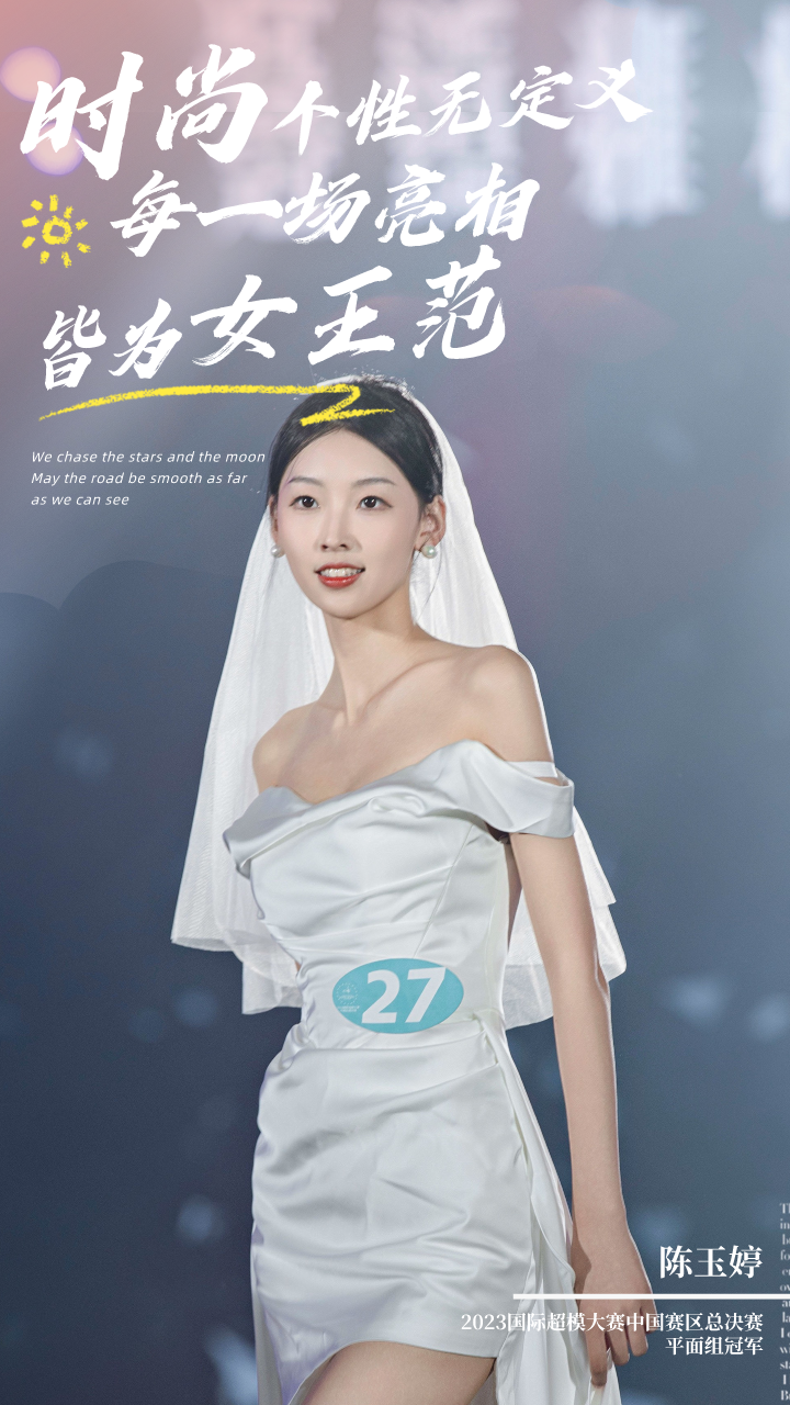 每一段经历的开始,总因为一种态度,一个决定,一次尝试。从省赛到登台全国总决赛,踏出舒适圈,陈玉婷珍惜每一次亮相的机会,将服饰美、文化美、个性美交相融合,淋漓尽致地予以呈现,诠释无限魅力。“因为足够喜爱,所以才会有愿意为之努力的动力。”在超模比赛中,无论每一个环节面部表情的细节调整,还是对于时尚、超模等知识的自我渗透,从大到小,由点到面,求胜争先是她的首要之义。扎实掌握空乘专业知识之余,她会在课余选择投入到自己所喜爱的事物中去,例如走秀,例如加入女子仪仗队,尝试新领域。在这个布满了挑战的进步过程中,同样也布满了她从不封顶的极限值。