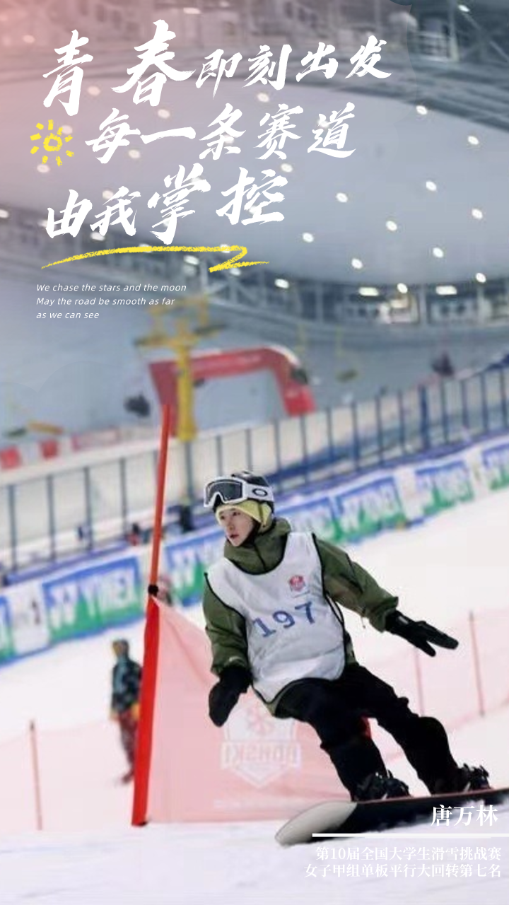 “滑雪,是我持之以恒的爱好。”回想起初次滑雪,俯看陡峭的雪道,唐万林早已准备好的勇气退散了一大半,“当时感到有点畏惧,但是滑雪好像自带‘悖论’,就是越陡的坡,就越让人产生主动去拥抱山下的欲望和勇敢。”当迈出了第一步,滑雪的魅力大门缓缓为她而打开。这是一个不断克服恐惧的过程,让她对恐惧有了更全新的认识,体会到一种飞驰的快感、对于自我的掌控感,对于所爱的成就感。不止是赛场,在青春这条赛道,她亦拥有了掌控自我的力量。