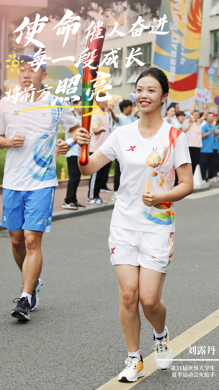 2023年7月2日,第31届世界大学生夏季运动会火炬传递成都站正式启动,刘露丹作为第三十四棒火炬手,以完美的姿态完成了火炬传递,展现了西航学子的青春风采。“虽然传递火炬只有60米左右,但我深感使命光荣,也立志要用最好的状态向世界展示中国风采!”火炬是光明、友谊、希望、拼搏精神的象征,火炬手是传递大运精神的使者。也许是经历过灾难,所以更加成熟勇敢,也许是从小就有一个“军人”梦而不断追逐,从“迷彩绿”到“大运白”,她将这份心怀家国、服务人民的精神燃烧且传递。