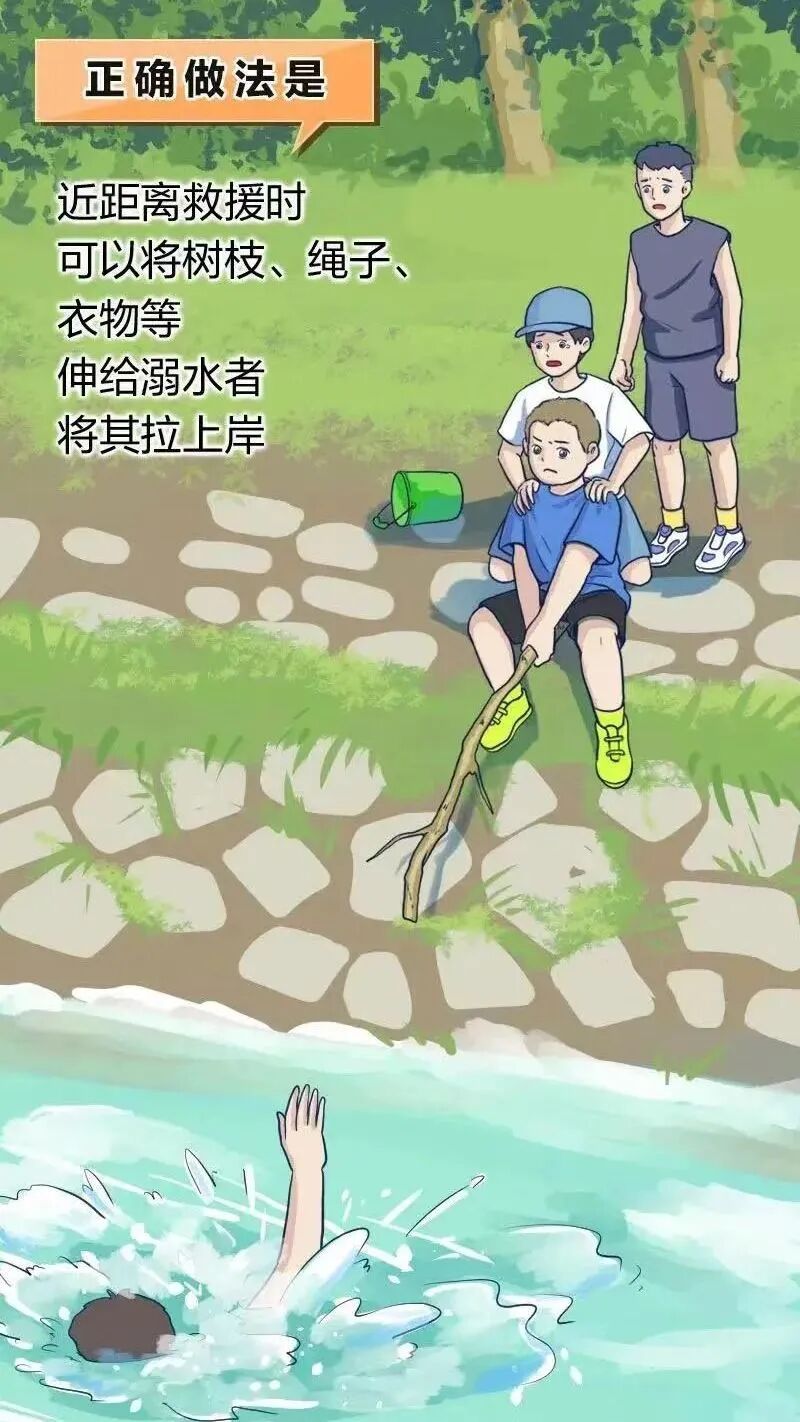 5.遇到有人溺水,不要盲目下水救人,要及时大声呼救并拨打110。