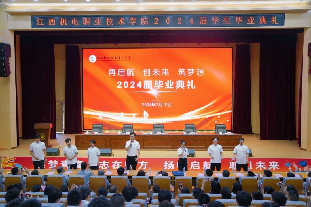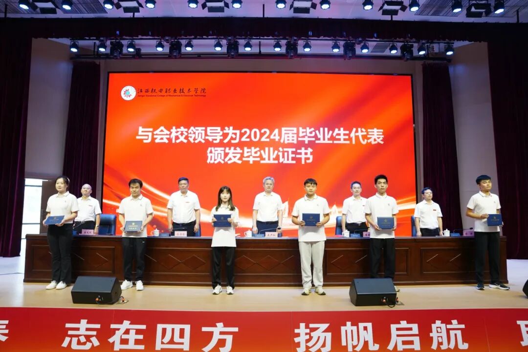 花严红以《守望花开》为主题为学子送上毕业寄语,深情地说,2024届毕业生是他担任江西机电职院校长以来迎来的第一届学生。三年寒暑,光阴似箭,感慨万千。同学们“咬定青山不放松”的坚韧、“初生牛犊不怕虎”的劲头、“扶摇直上九万里”的锐气和“愿得此身长报国”的志向让他欣慰骄傲。三年来,所有机电人倾心尽力、砥砺奋进,努力用“第一等业绩”和奋斗者的姿态托举机电学子的梦想,成就父母望子成龙、望女成凤的期盼。