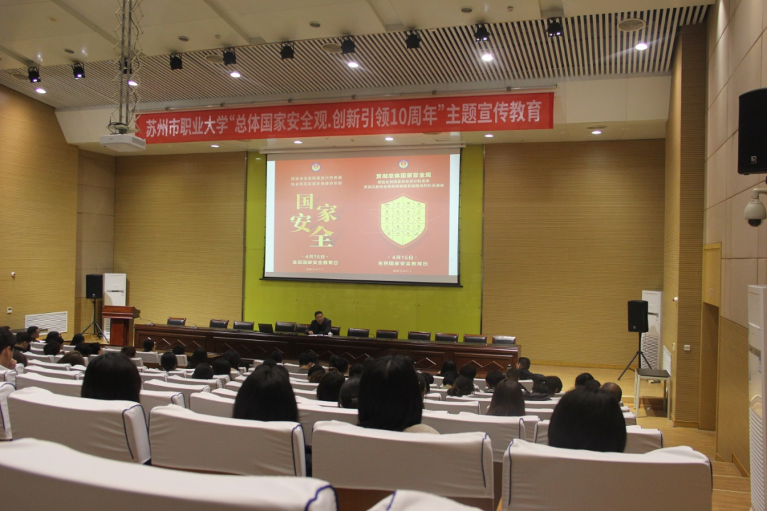 为提升广大师生国家安全意识,筑牢国家安全人民防线,4月11日下午,学校保卫处邀请苏州市国家安全人民防线建设领导小组办公室(以下简称“市防线办”)国家安全宣讲团来校开展国家安全宣传教育活动。校党委委员、副校长张军,市防线办相关领导,保卫处相关老师及各学院(部)辅导员、近200名学生参加了活动。