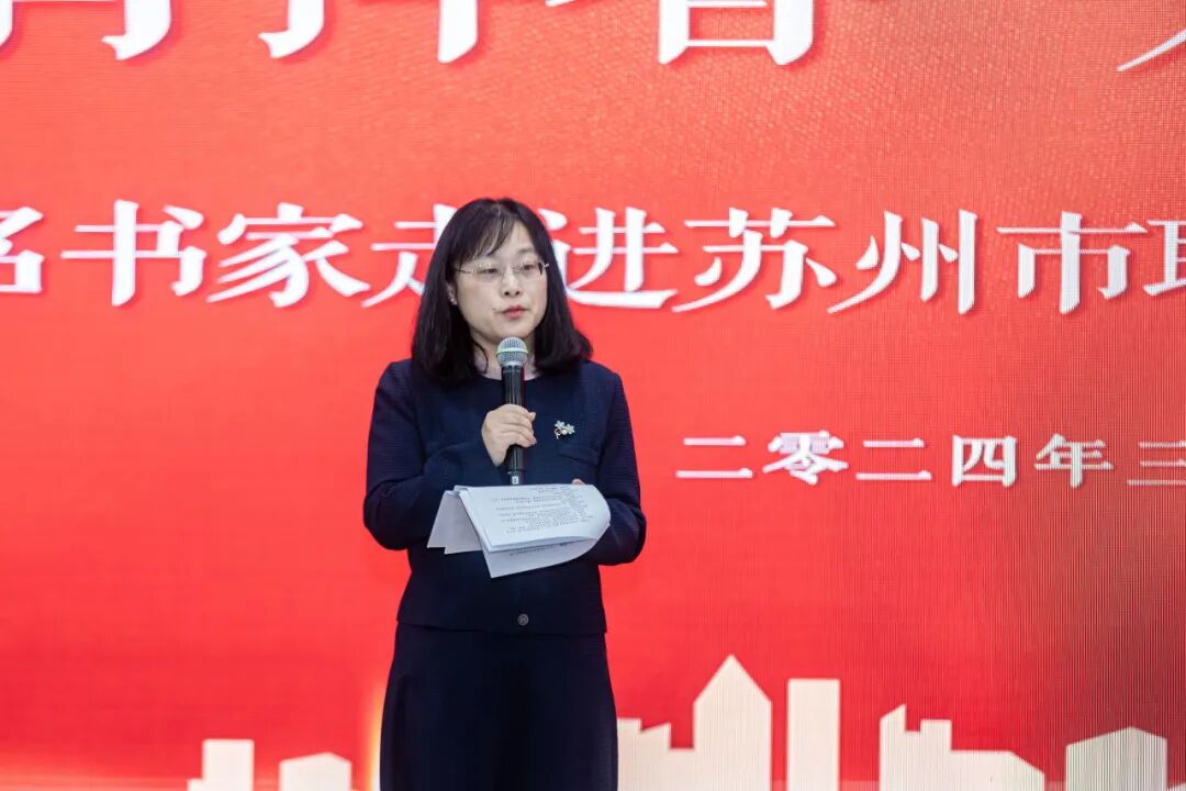 “胜日寻芳石湖滨,无边光景一时新。”随后,王伟林在致辞中,以《石湖·春日》开篇,用诗情画意的方式,表达了相聚石湖之畔共赴春日之约的喜悦之情;他表示,美育是提升国家文化软实力、增强国家核心竞争力的重要内容,中国书法艺术是中华优秀传统文化的瑰宝;传承好中国书法,对于弘扬中华美学精神、坚定文化自信,具有不可替代的重要作用。希望通过此次主题活动,为苏州市各级各类学校美育浸润行动,开启新的篇章。