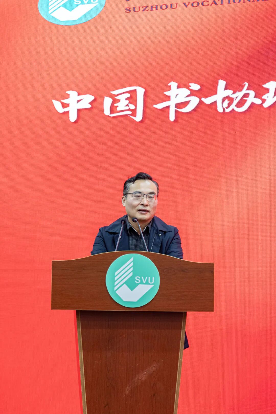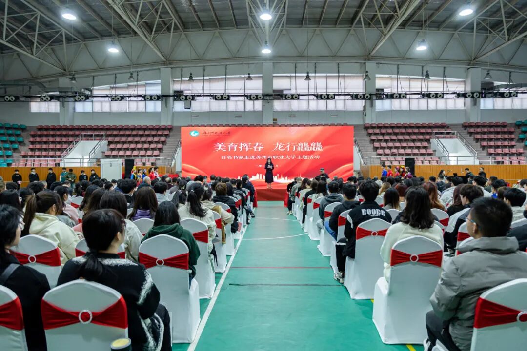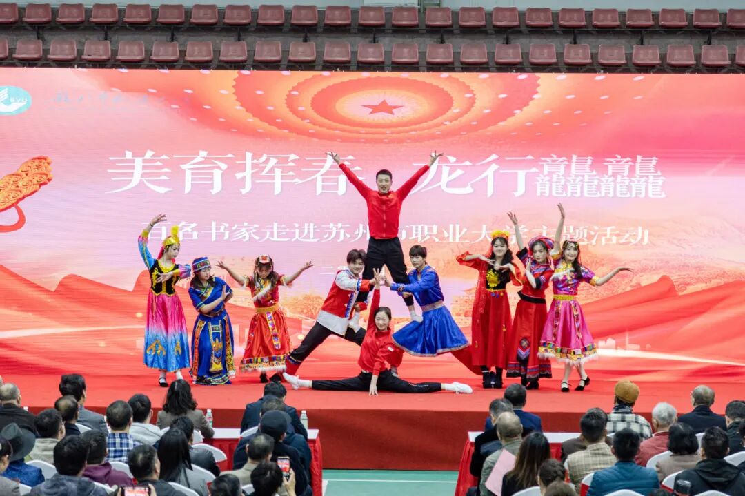 为深入学习贯彻习近平文化思想,弘扬中华优秀传统文化,在实施高校美育浸润行动中实现以美育人、以文化人,营造文化育人氛围,时值3月20日春分时节,由我校与苏州市书法家协会共同举办的“美育挥春,龙行龘龘——百名书家走进苏州市职业大学”主题活动暨迎接江苏省第十四届新人展看稿会隆重举行,来自苏州的百名书家和我校师生代表220余人济济一堂,为春日校园增添了浓浓的书香墨韵。中国书协理事兼学术委员、江苏省书协副主席、苏州市书协主席、苏州科技大学中国书法文化研究所所长、教授、硕士生导师王伟林等多位书法名家,校党委书记曹毓民,校党委副书记、校长温贻芳,校党委委员、副校长张军共同出席了此次活动。